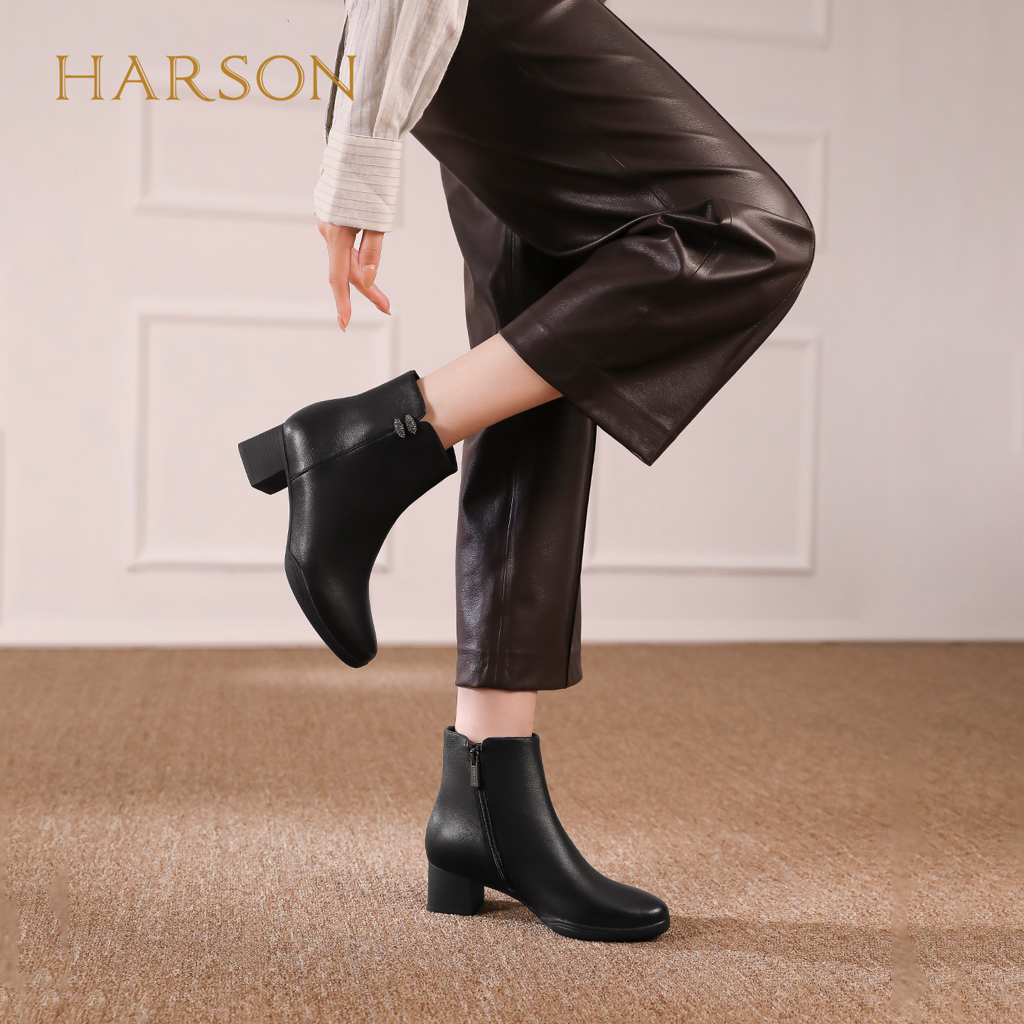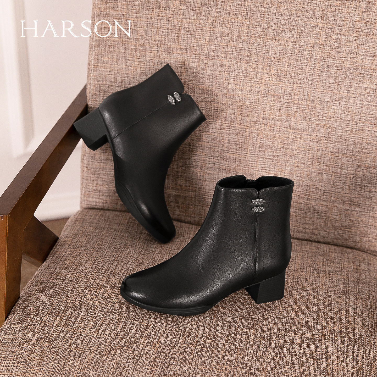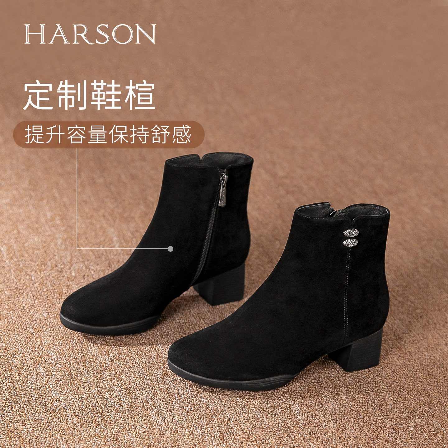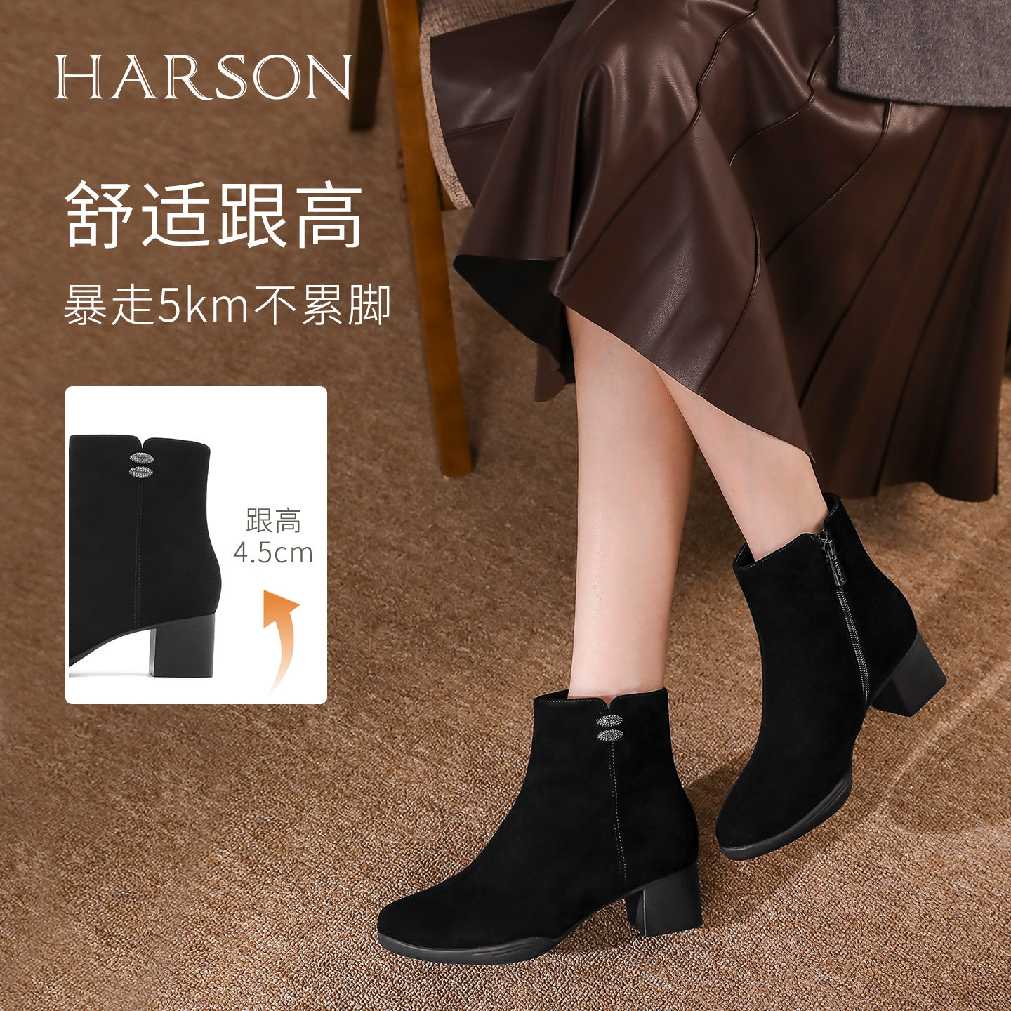 哈森粗高跟时装靴气质百搭显瘦侧拉链女短靴2025冬新款HA257906