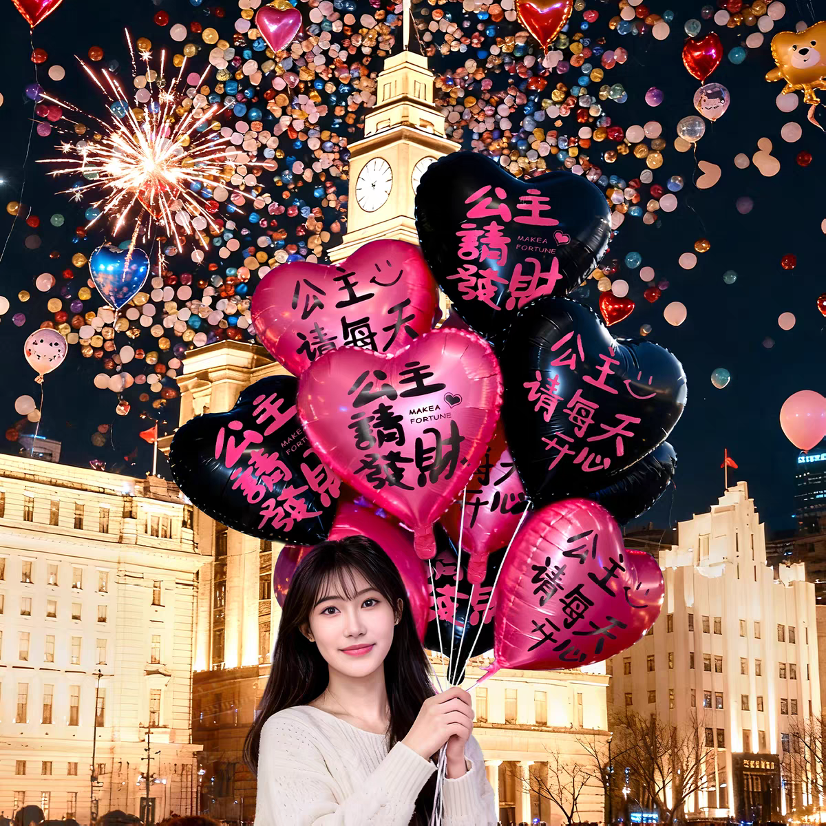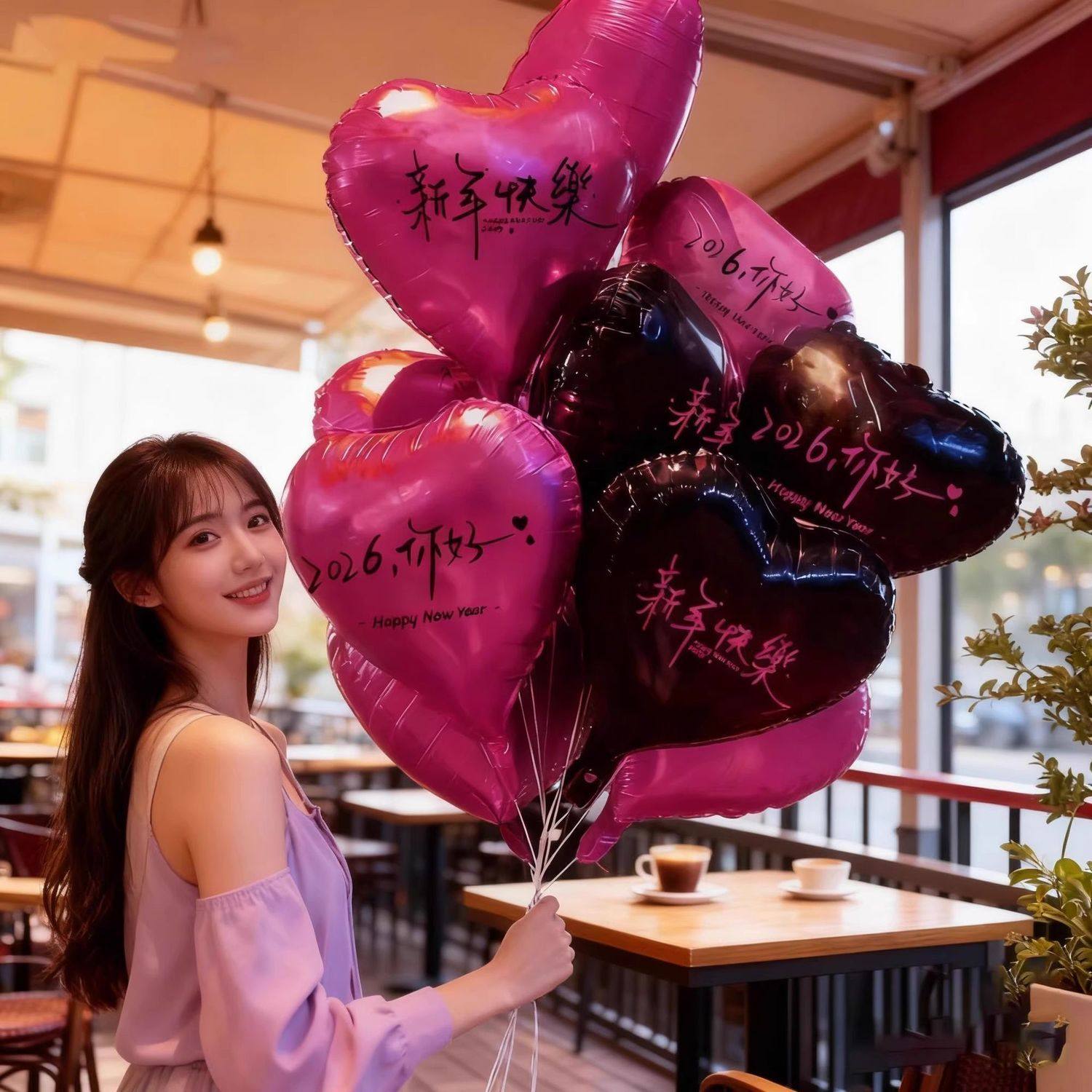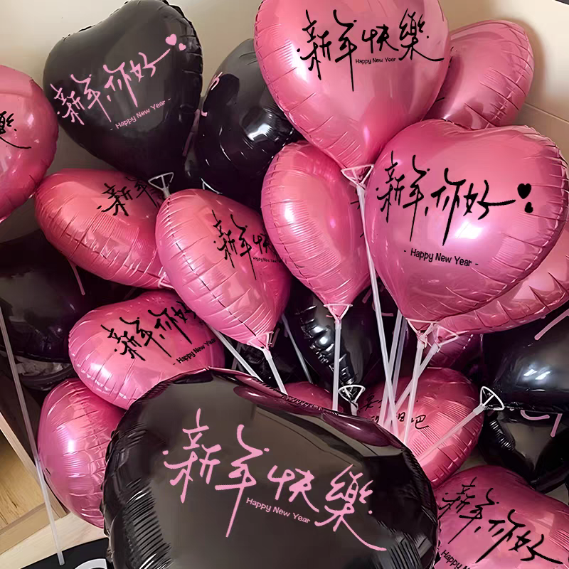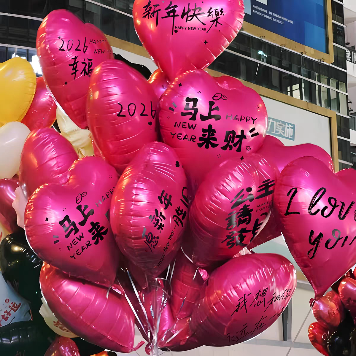 2026跨年气球双面爱心元旦氦气放飞18寸铝膜网红拍照出片心形