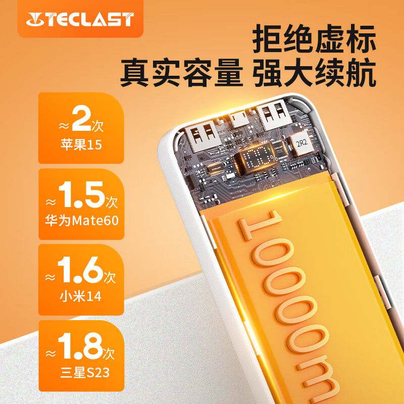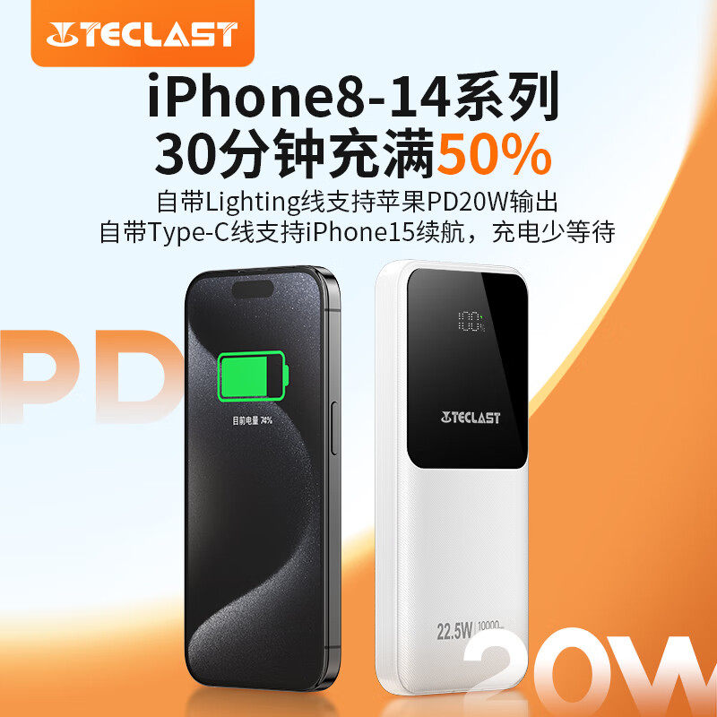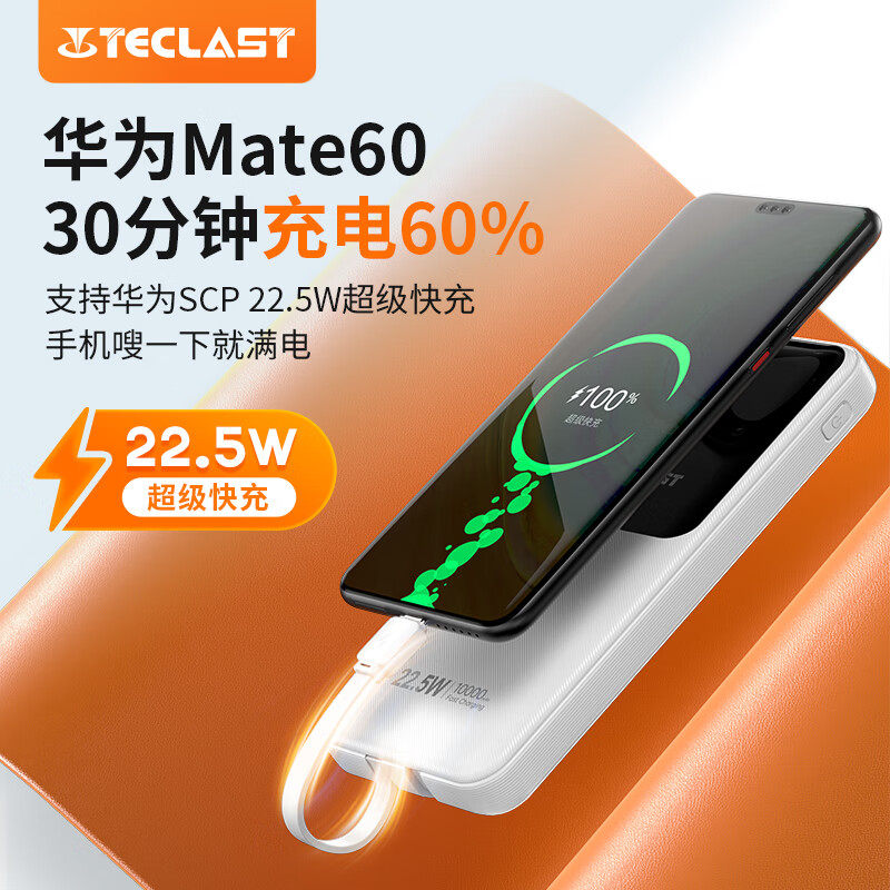 台电充电宝台电自带线10000毫安时大容量22.5W快充便携快充移动电源1万自带双线22.5W A10PRO