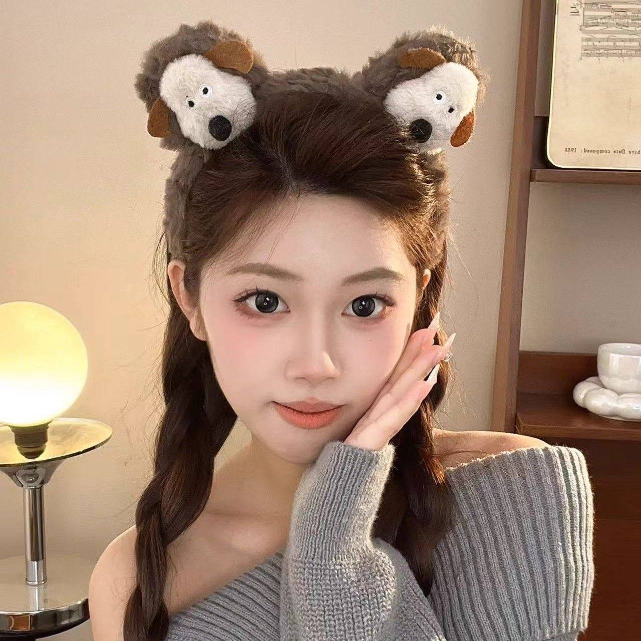 洗脸头箍可爱豹纹猫咪居家少女化妆敷面膜压发发箍氛围感发卡头饰