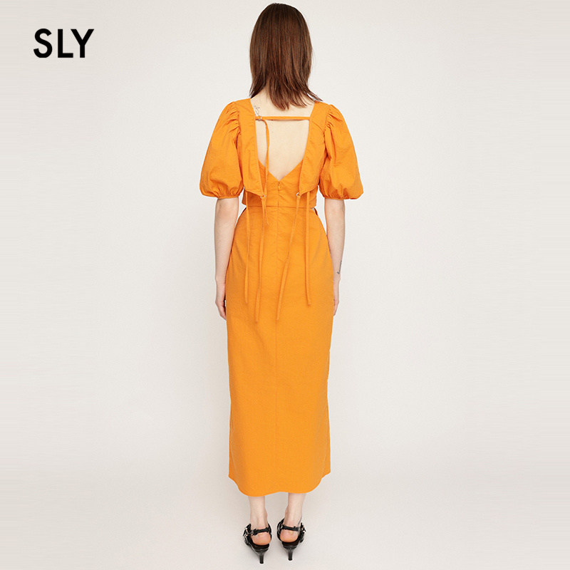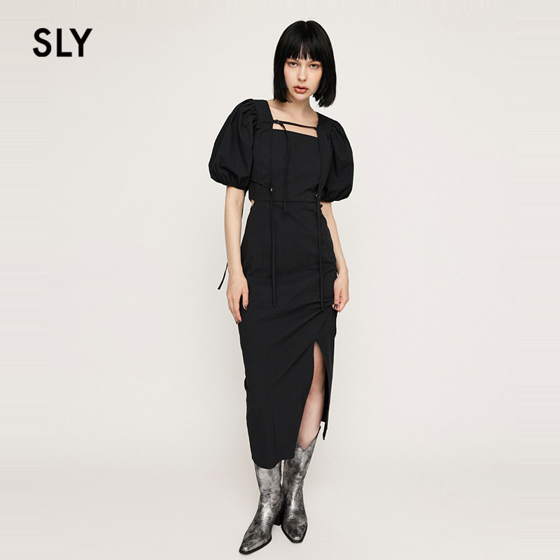 SLY 春季气质优雅泡泡袖两件套开叉连衣裙030HSI33-2041