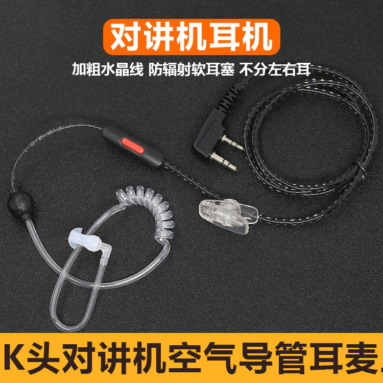 K头双插头对讲机带麦耳机耳塞 入耳式水晶粗线手台软耳麦