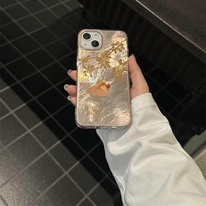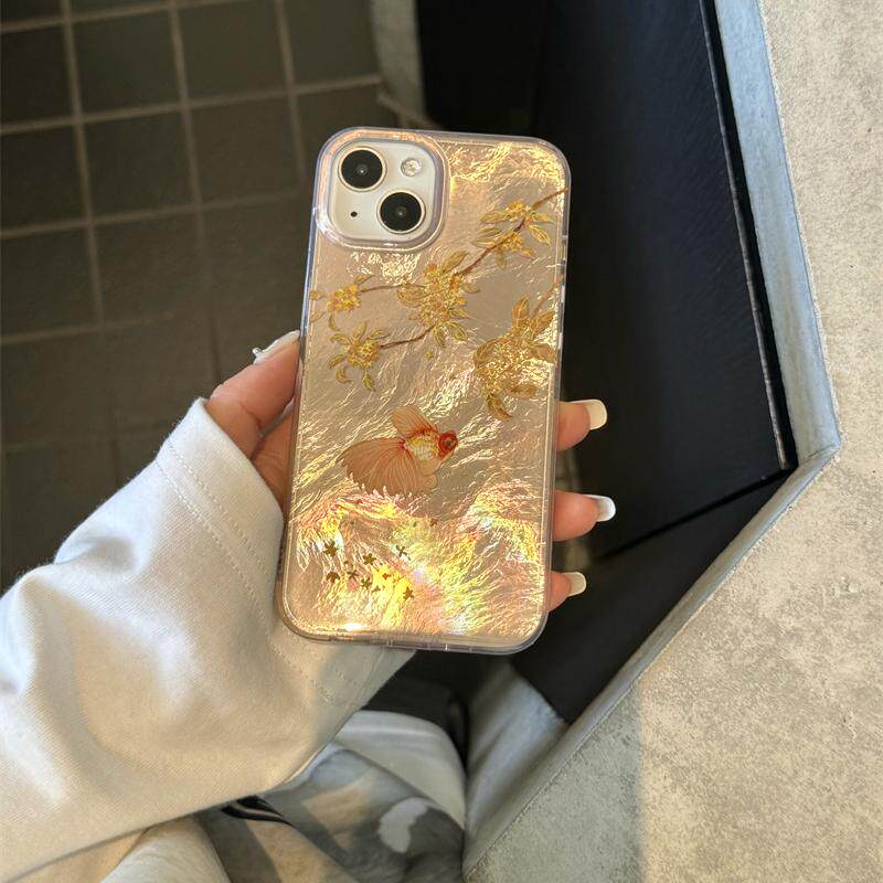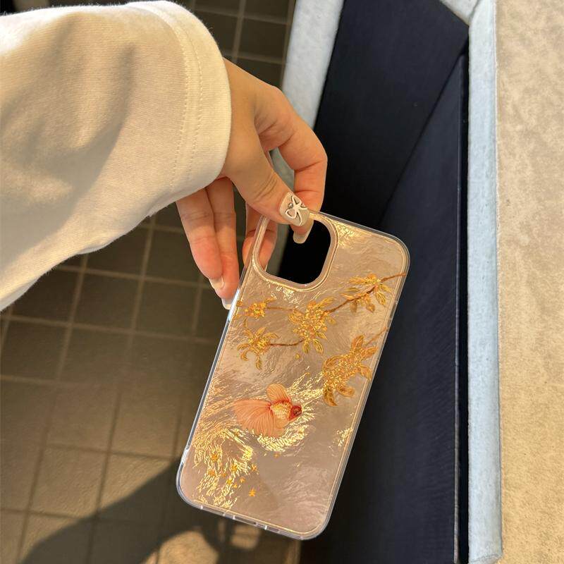 ins小众高级感新中式国风桂花金鱼16promax适用iphone15苹果13pro双层锡纸纹14手机壳12保护套硬壳情侣款防摔