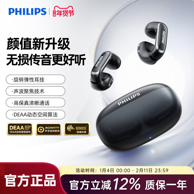 飞利浦TAT4459开放式蓝牙耳机真无线耳夹式运动气骨传导2025新款