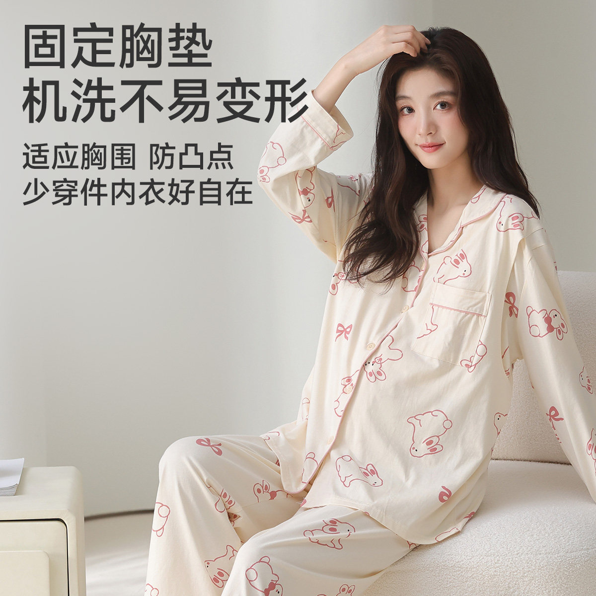 春秋季云感棉带胸垫月子服产后产妇秋冬12月份孕妇哺乳睡衣家居服