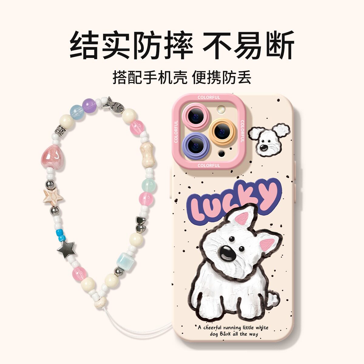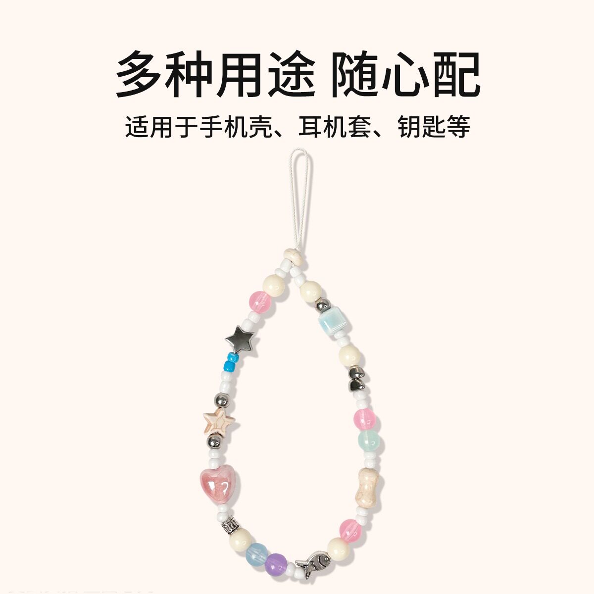手机链高端挂绳挂饰新高级短款适用苹果华为吊坠小红书同款设计夏日清新奶蓝色奶油串珠手机壳ccd相机配饰