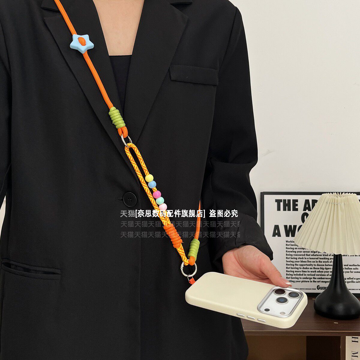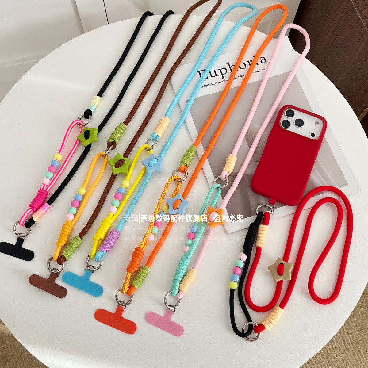 多巴胺撞色彩珠三合一挂绳 挂脖斜挎手提
