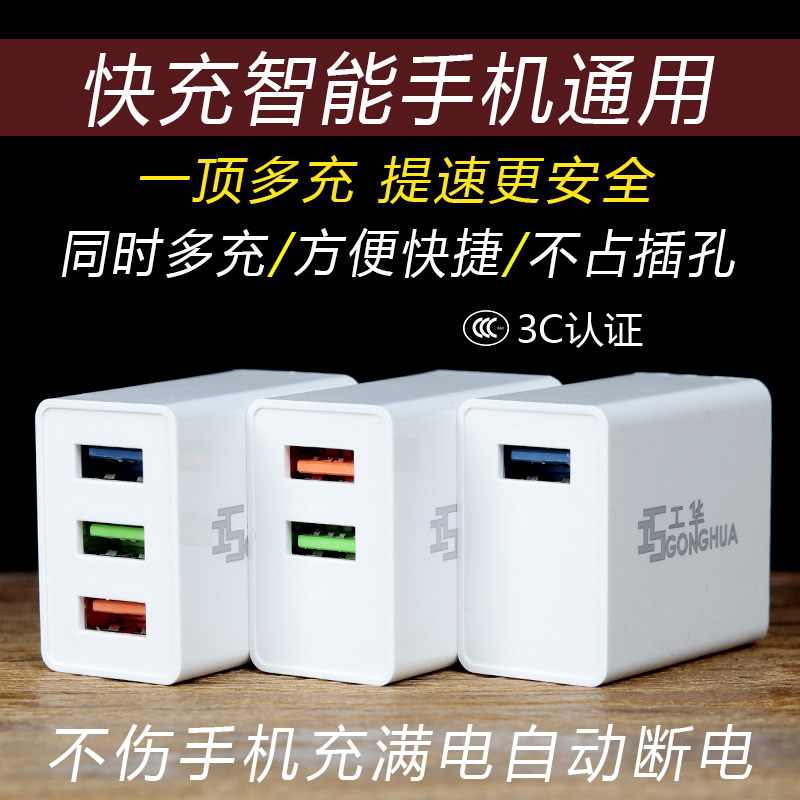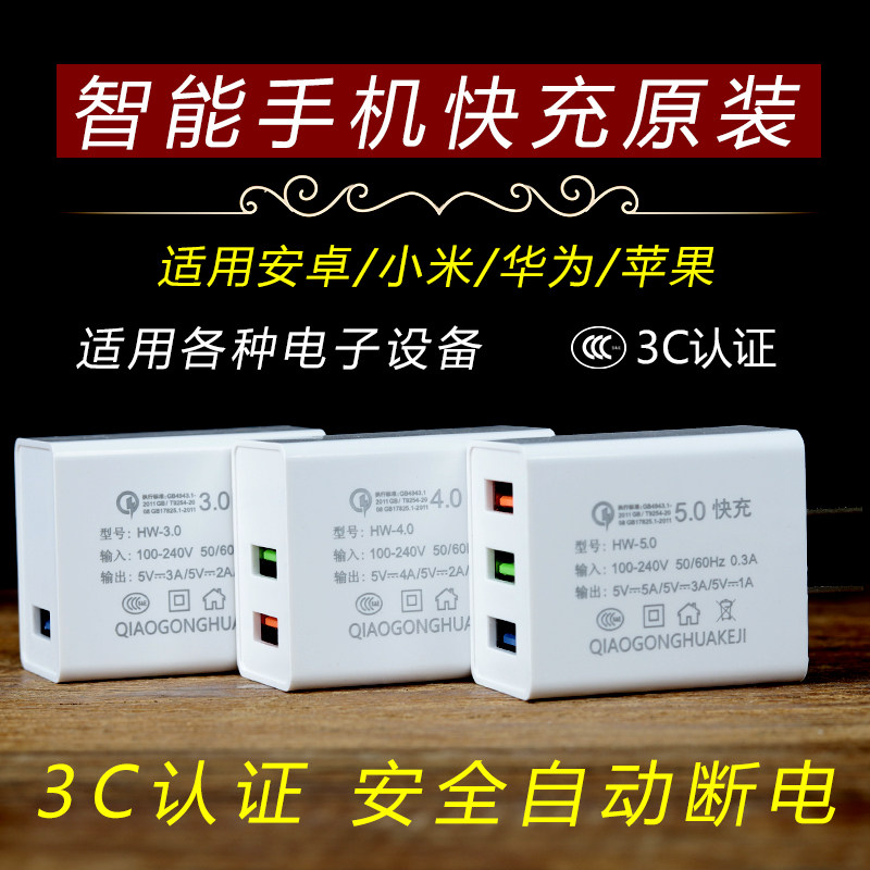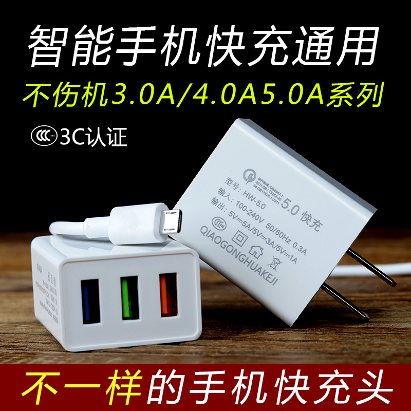 手机6A快充电器安卓通用插头适用于华为小米vivoOPPO4USB多口闪充数据线