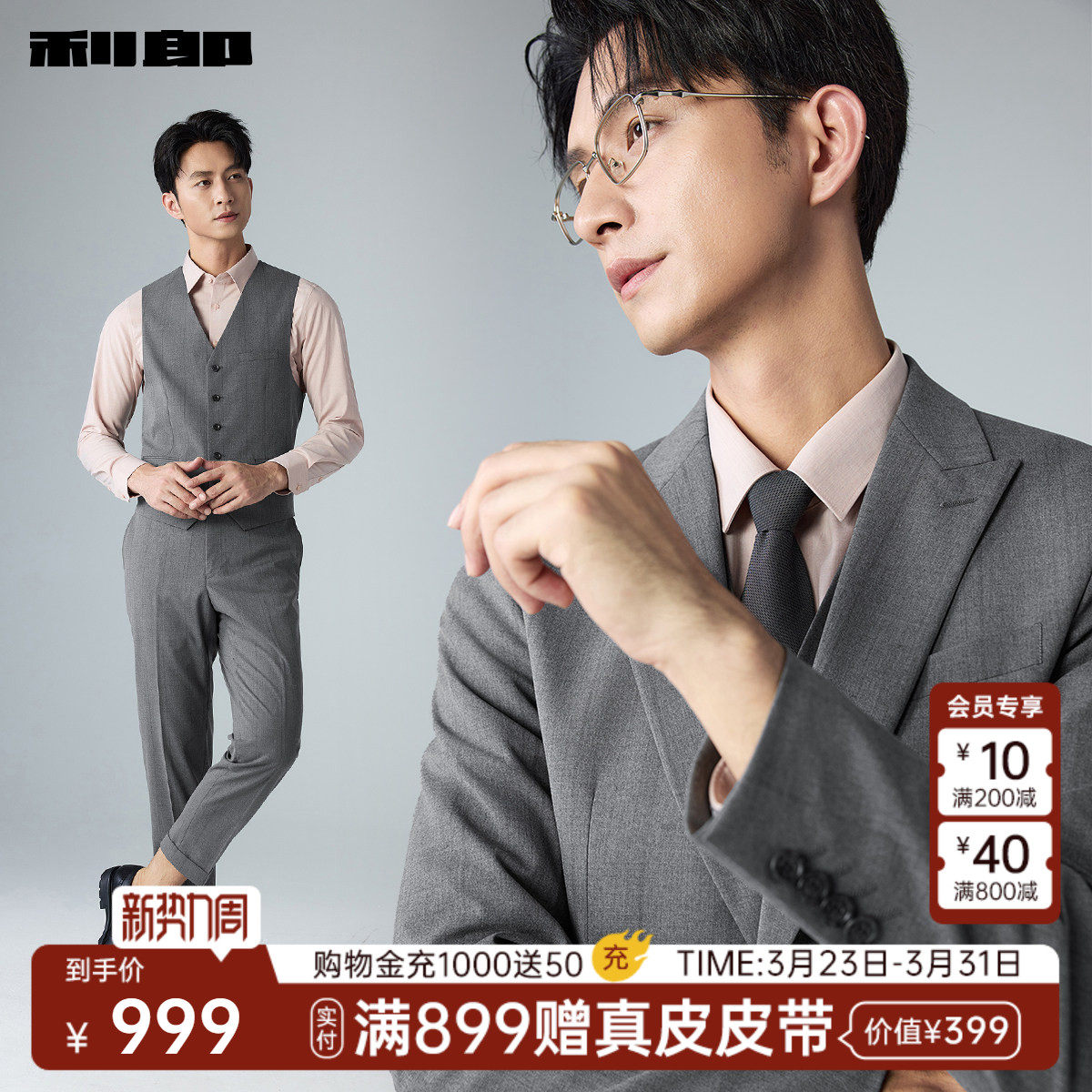 【三件套】利郎官方含马甲西服套装男士商务结婚2026春季新款男装