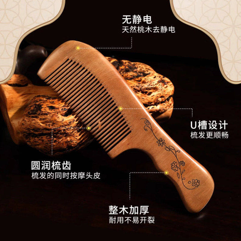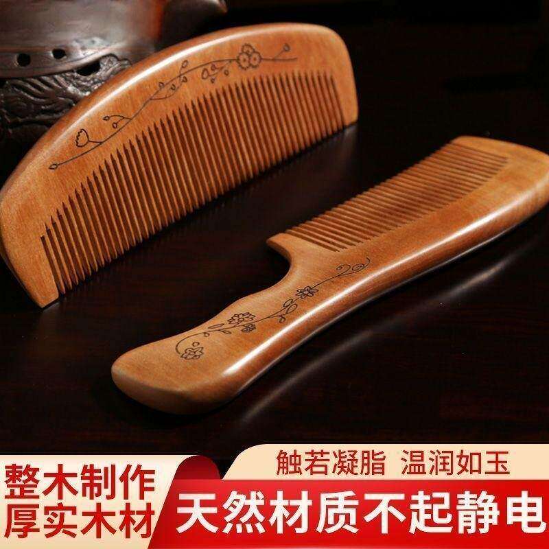 梳头梳子新款纯桃木梳家用防静电木头梳实檀木男女细宽齿按摩梳子