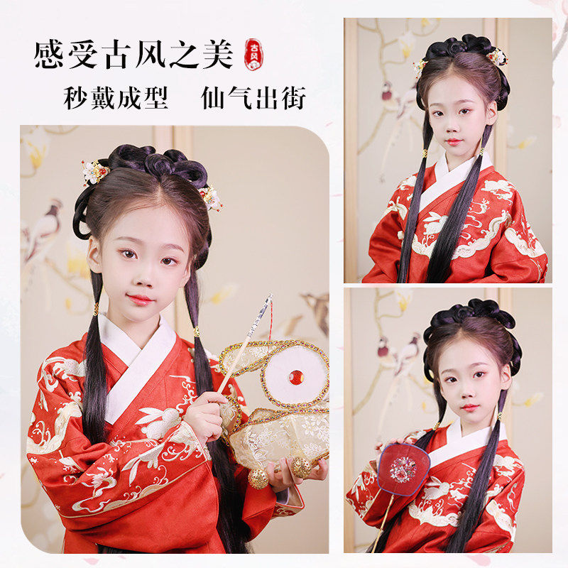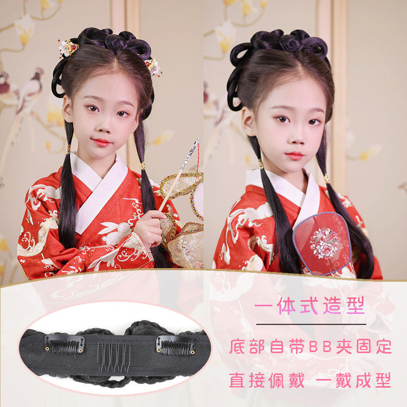 儿童汉服懒人假发包女童一体式发髻古装日常发饰古风头饰造型唐风