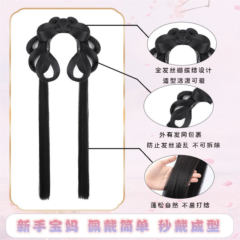 儿童汉服假发一体式古风盘发发髻女童蝴蝶结发包古装头饰垫发造型