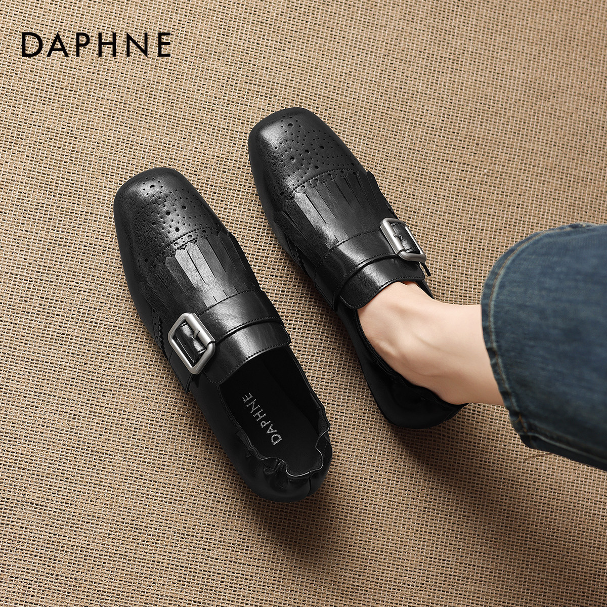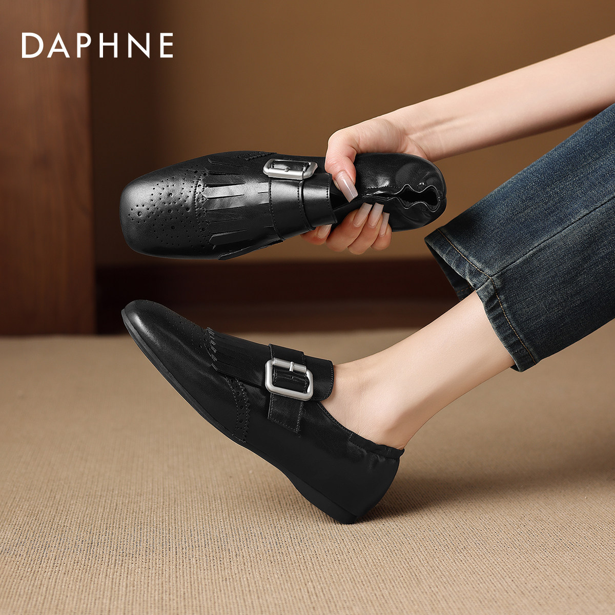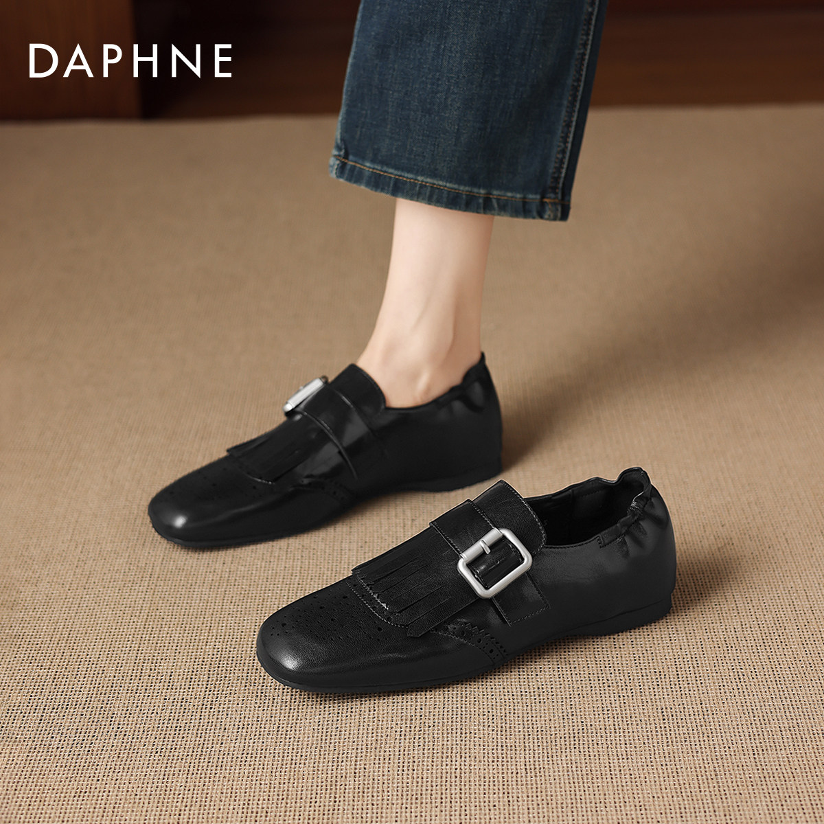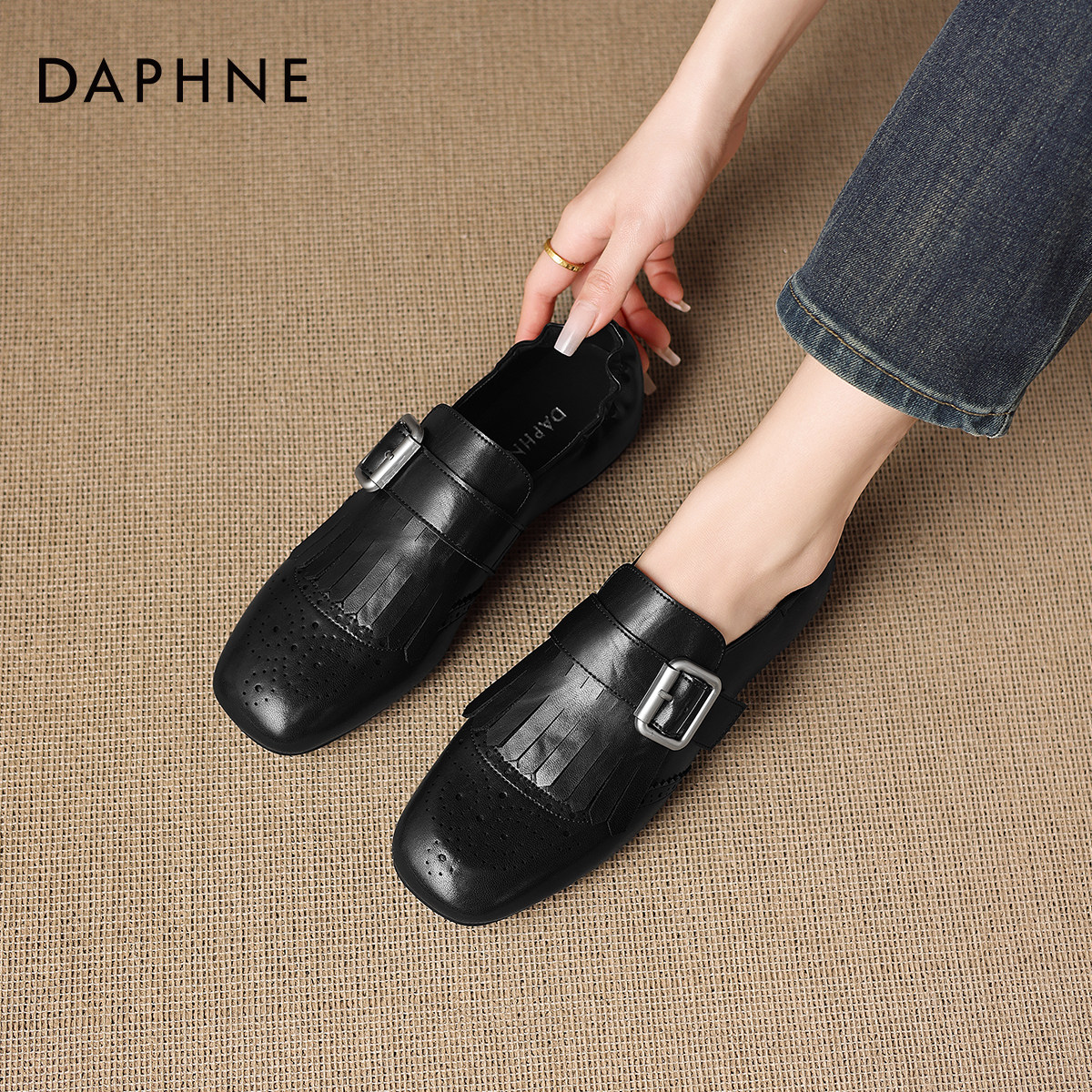 达芙妮流苏乐福鞋女款2026新款英伦风小皮鞋软底布洛克鞋平底单鞋