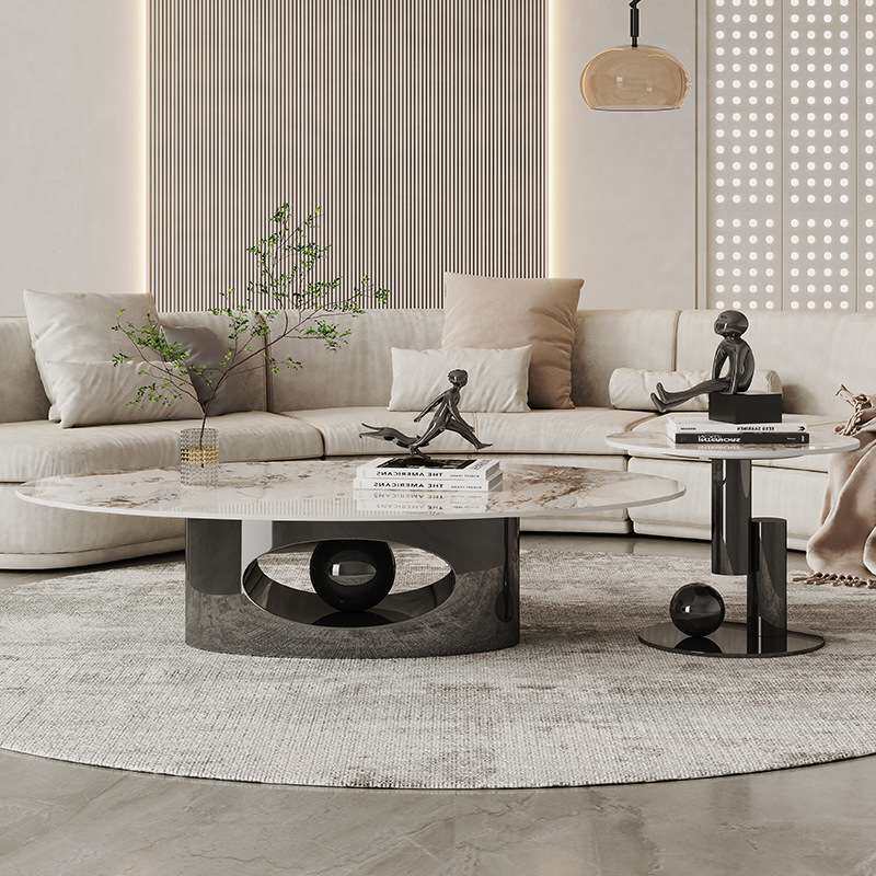 轻奢岩板大小茶几组合椭圆客厅后现代意式极简不锈钢设计师款桌类