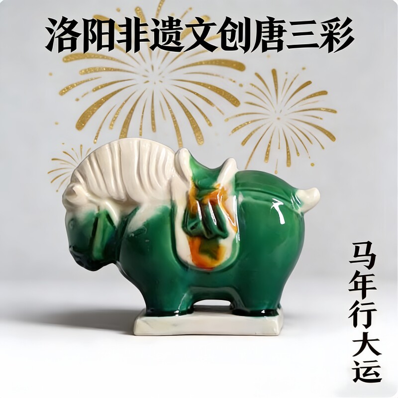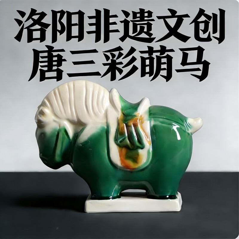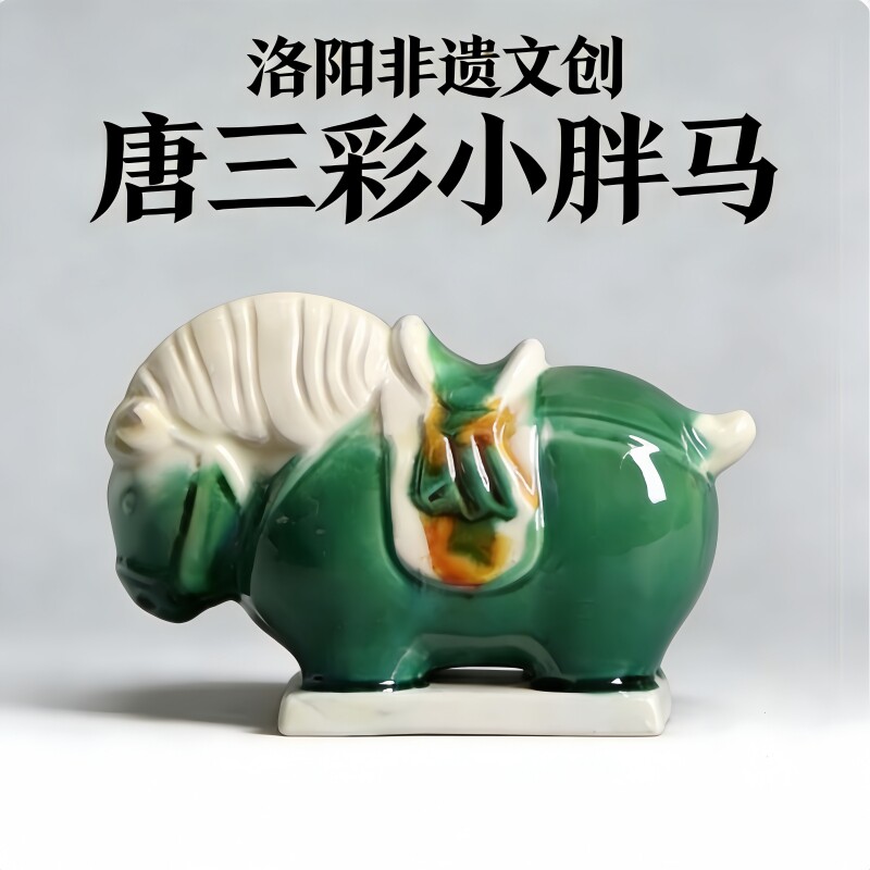 洛阳唐三彩陶瓷佛系胖马文创艺术品手办小胖马旅游伴手桌面装饰品