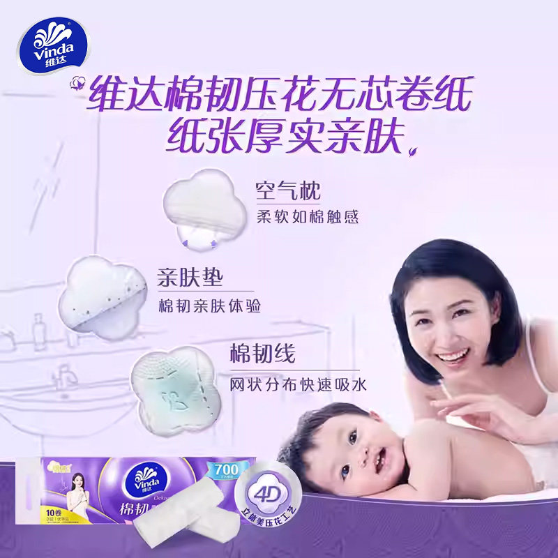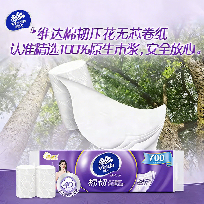 维达超韧无芯卷筒纸3层70g加厚不易破棉柔感亲肤无刺激家用厕纸