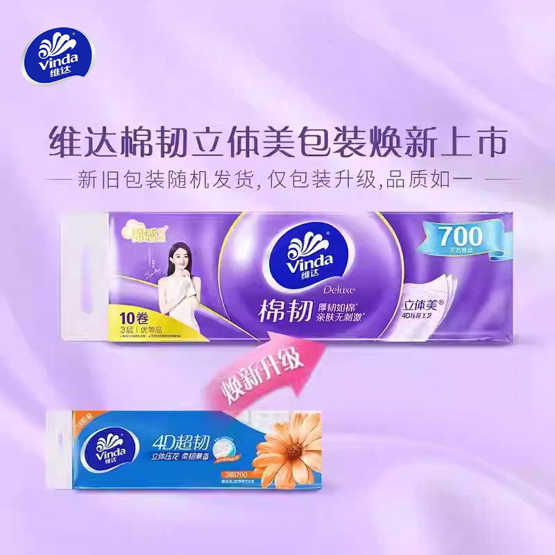 【孙颖莎推荐】维达卷纸蓝色经典卫生纸巾四层家庭装有芯卷纸厕所