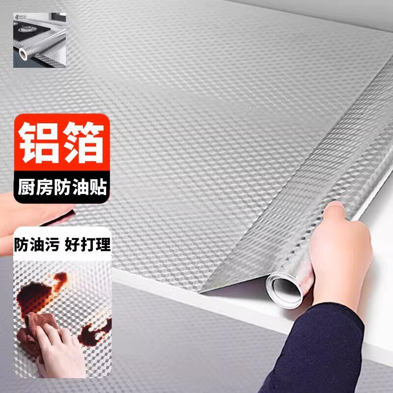 厨房防油贴纸耐高温油烟机橱柜灶台防潮防水自黏贴纸膜铝箔锡箔