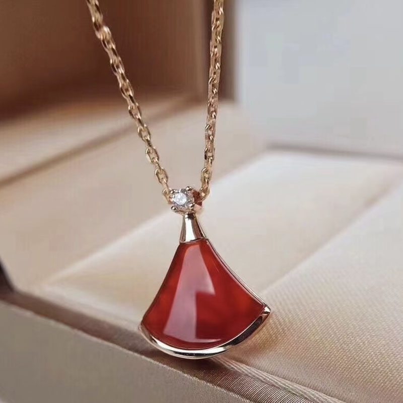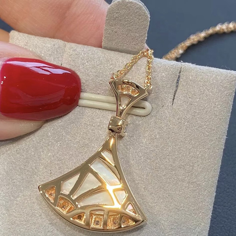 小裙子项链女镀18k玫瑰金轻奢锁骨链白贝母扇形吊坠新年白金纯银