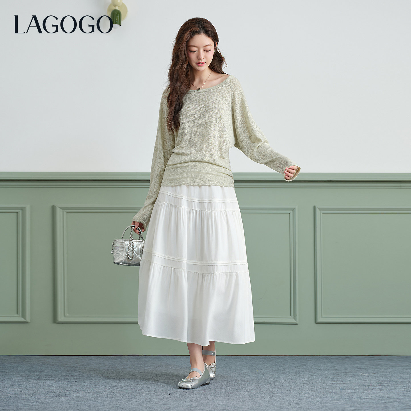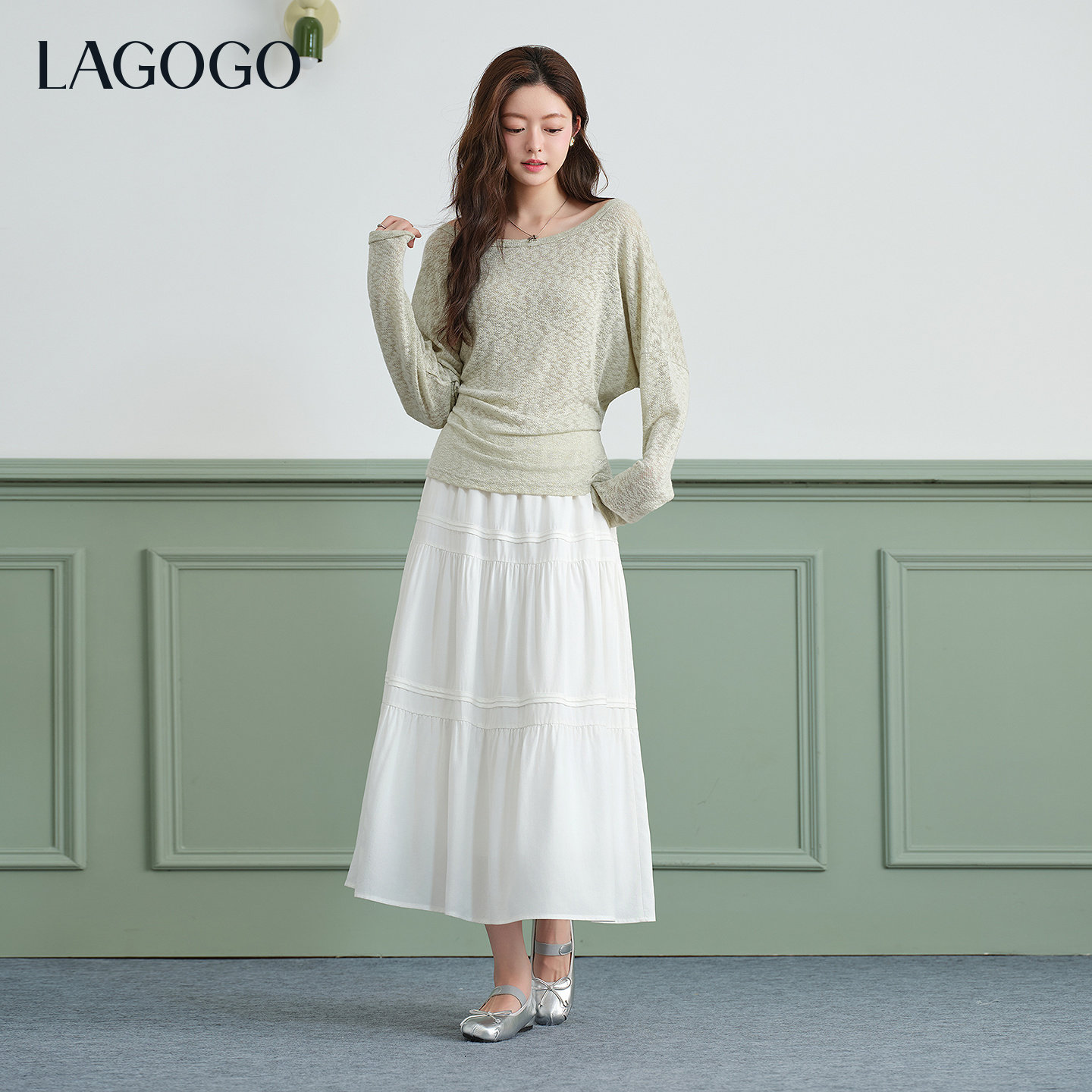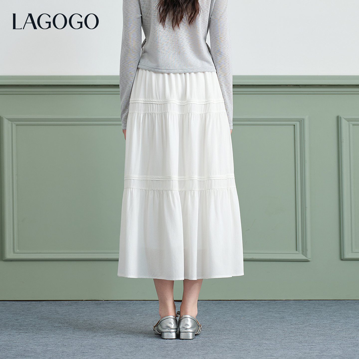 LAGOGO白色垂感A字半身裙女拉谷谷2026春夏新款小个子长款蛋糕裙