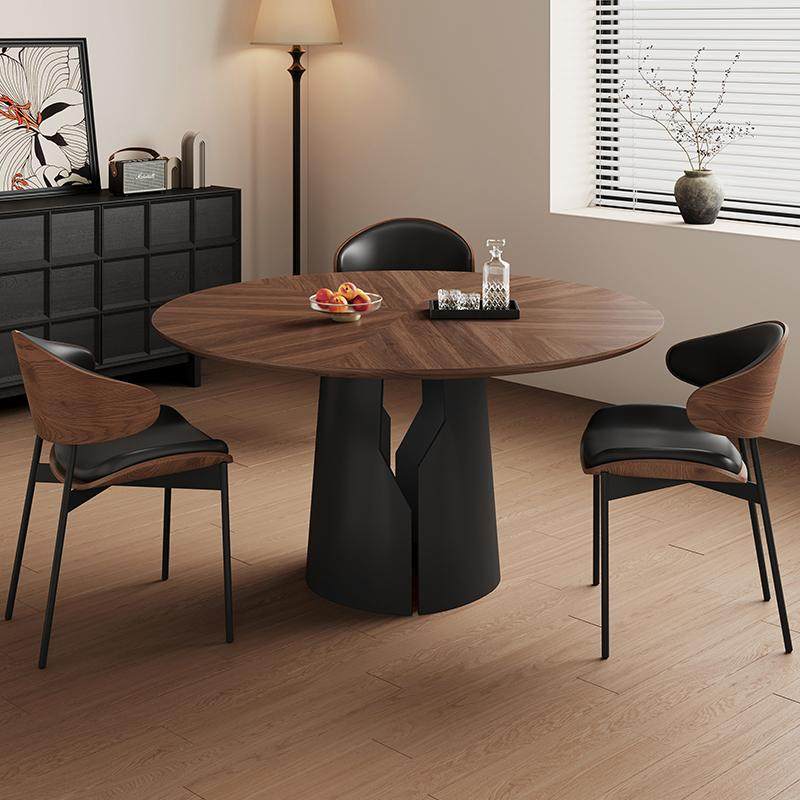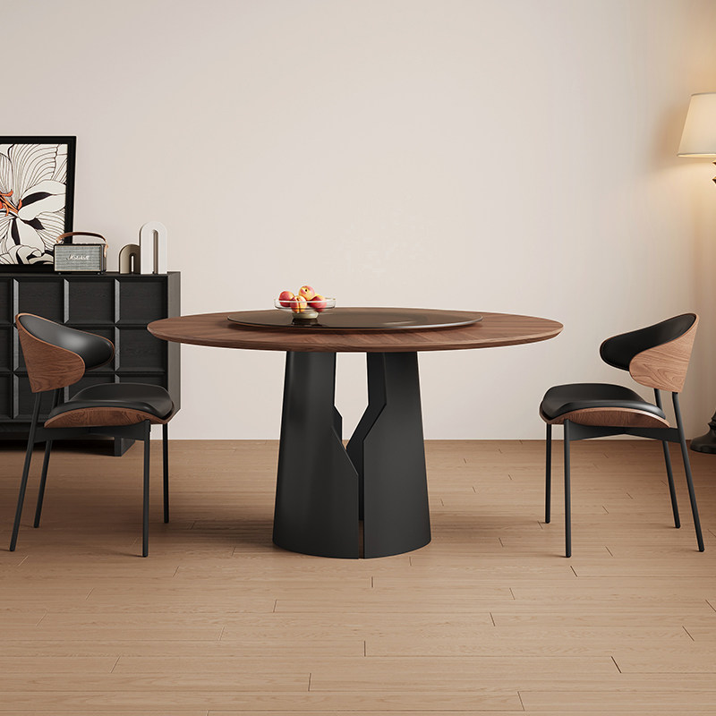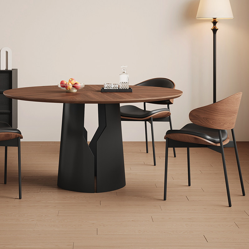 中古风实木圆形餐桌小户型1.2米实木大板6人饭桌黑色实木岩板餐桌