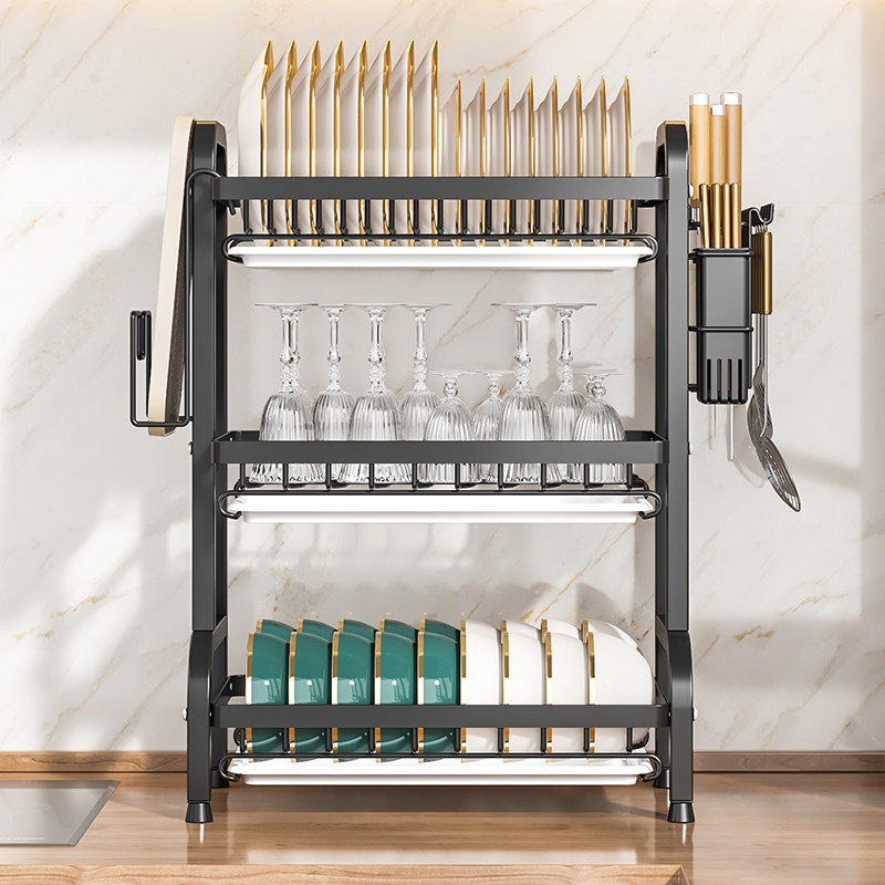 厨房沥水架碗碟架餐具置物架子多功能碗柜台面铁艺厨具水杯收纳筐