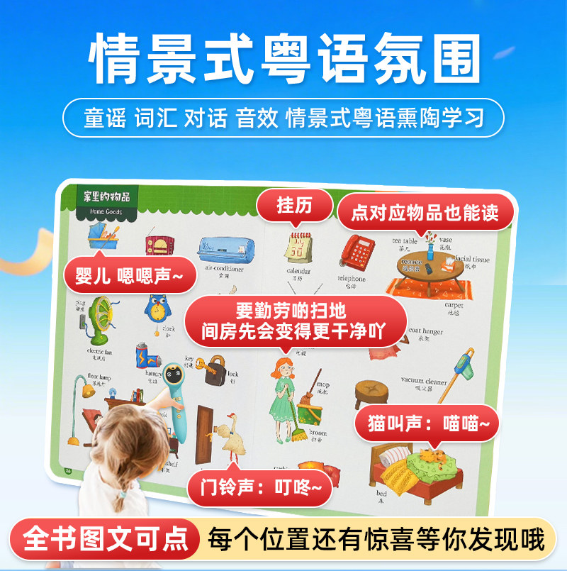 粤语点读笔有声早教机小蝌蚪A6幼儿0到3岁启蒙绘本儿童识字书百科