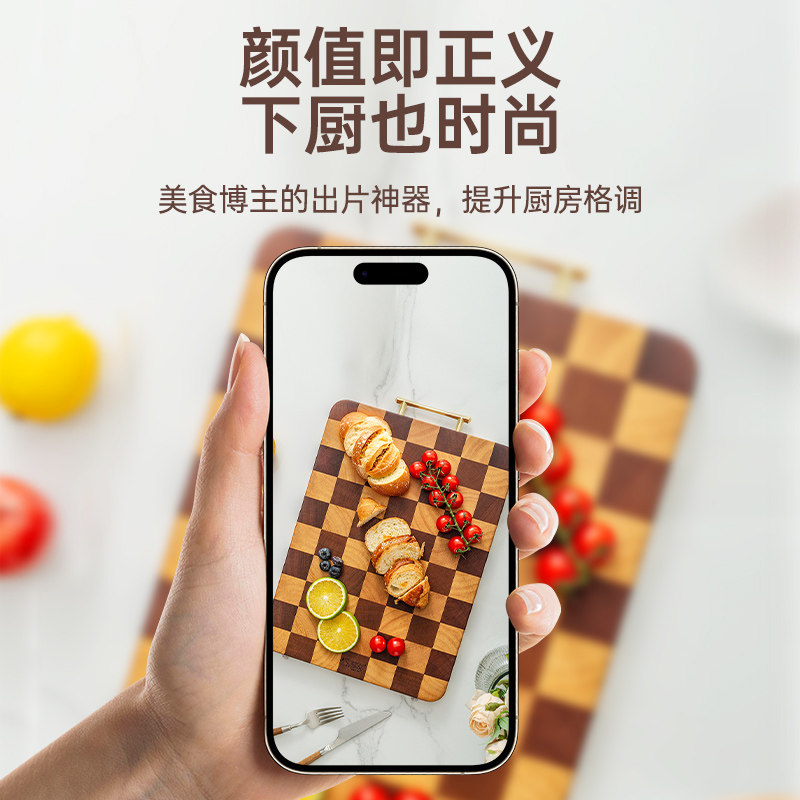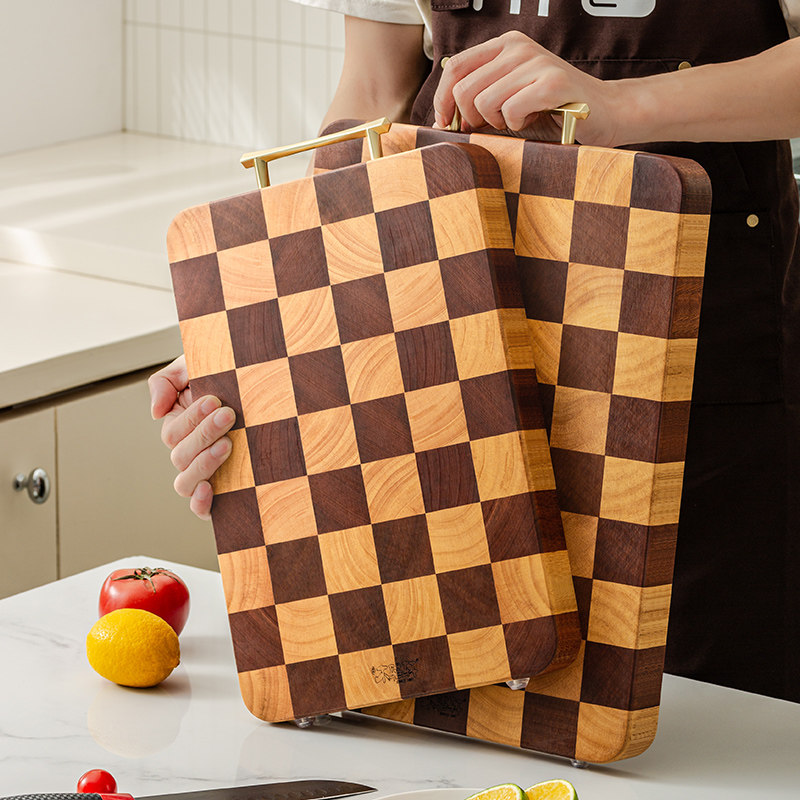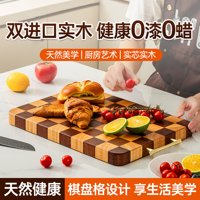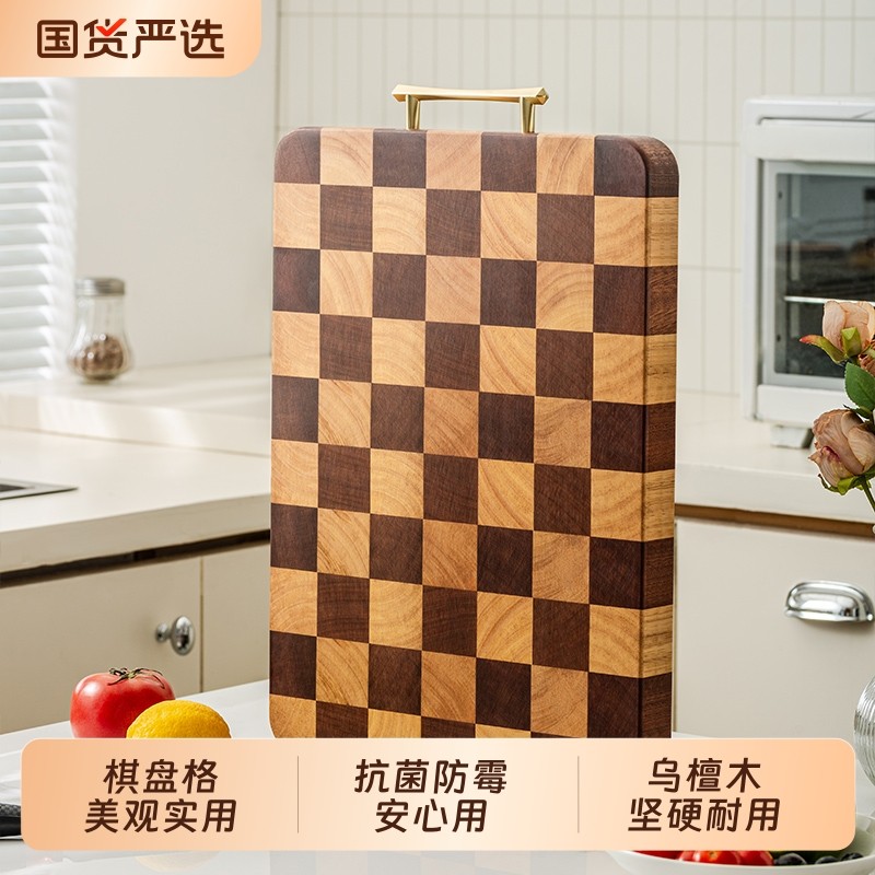 木雅轩棋盘格切菜板家用抗菌防霉乌檀木菜板实木砧板厨房专用案板