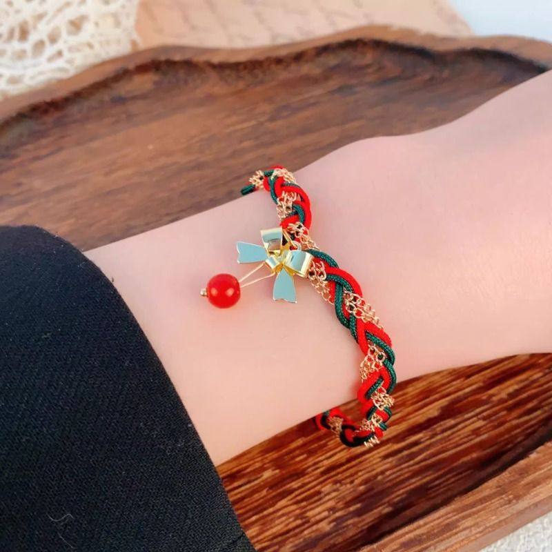 圣诞节手链女小众高颜值圣诞闺蜜礼物二人蝴蝶结吊坠手工编织手绳