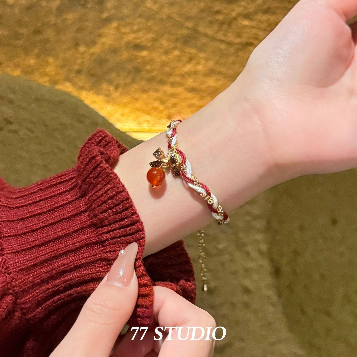 周大生好柿花生红玛瑙手串纯银国风设计感手链女本命年礼物送女友