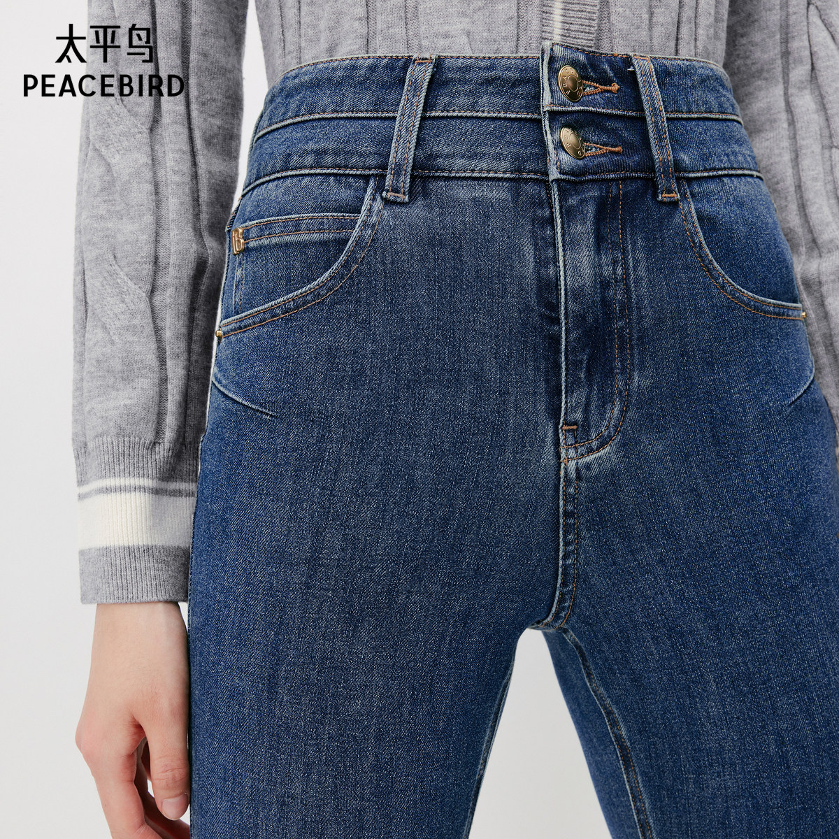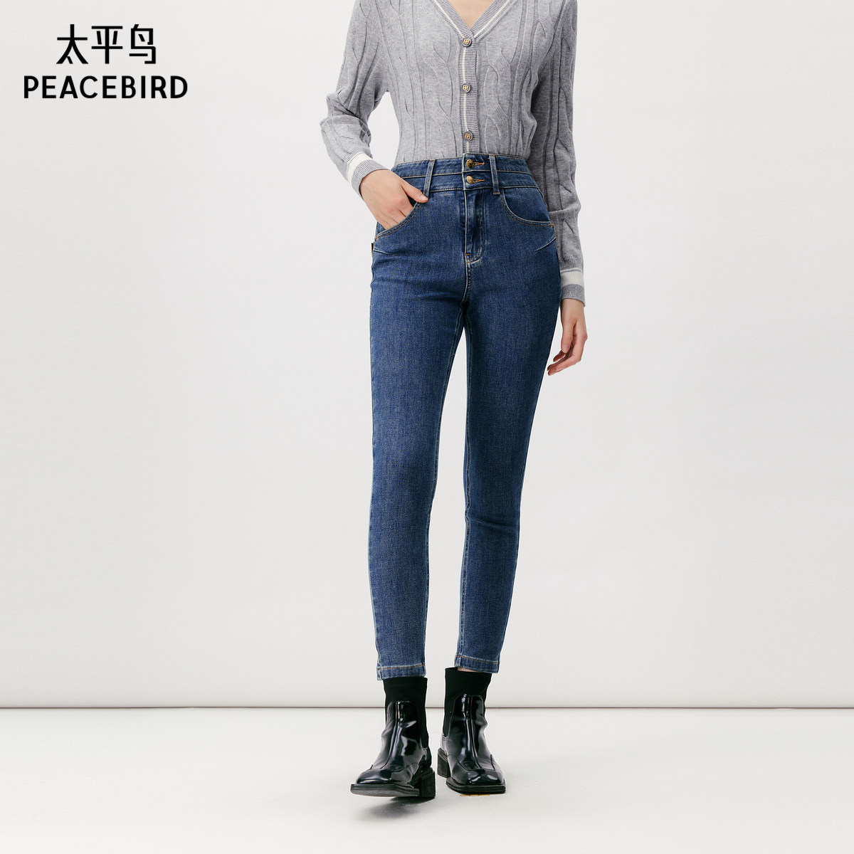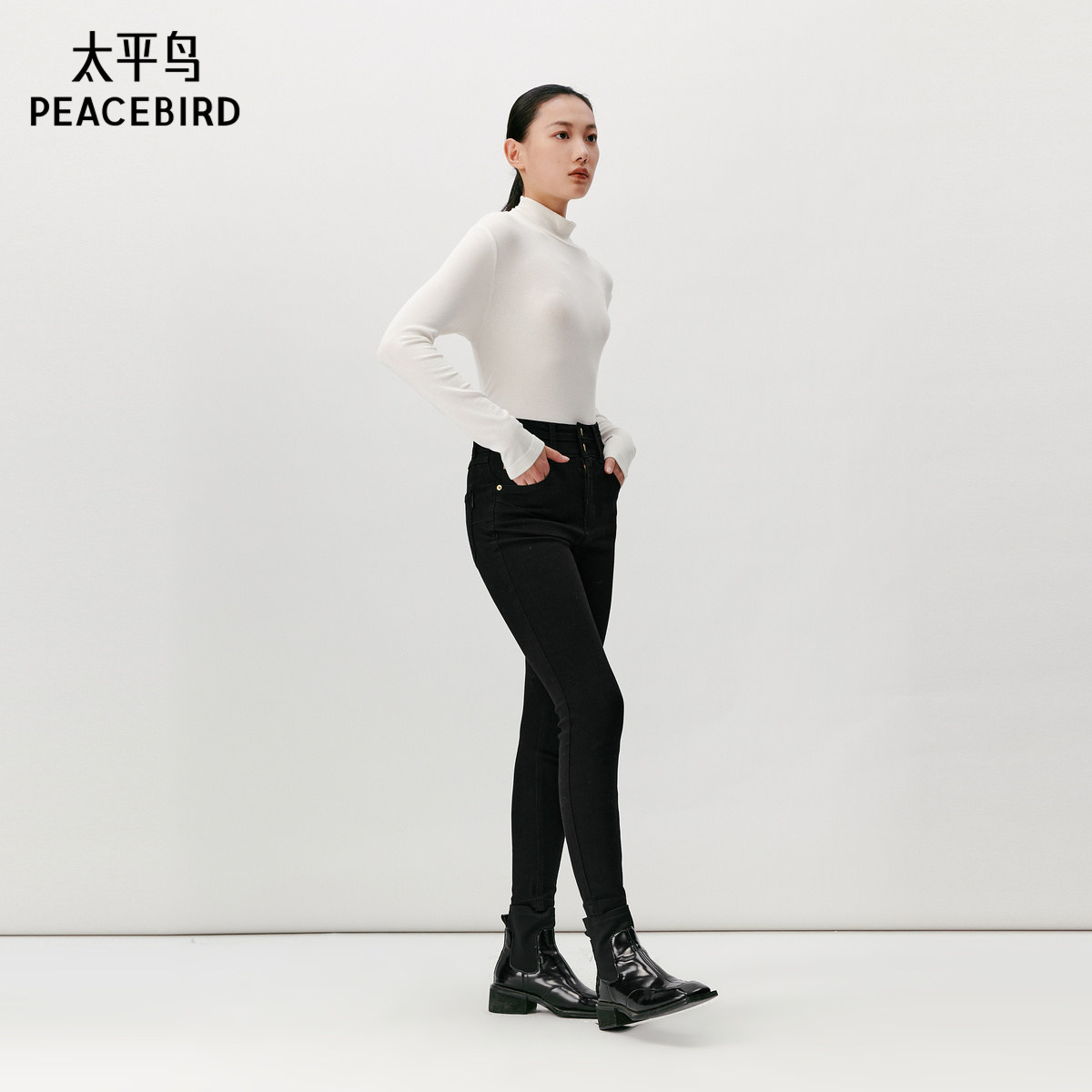 太平鸟高腰小脚裤年秋冬款四面弹紧身铅笔牛仔裤A1HAD4350