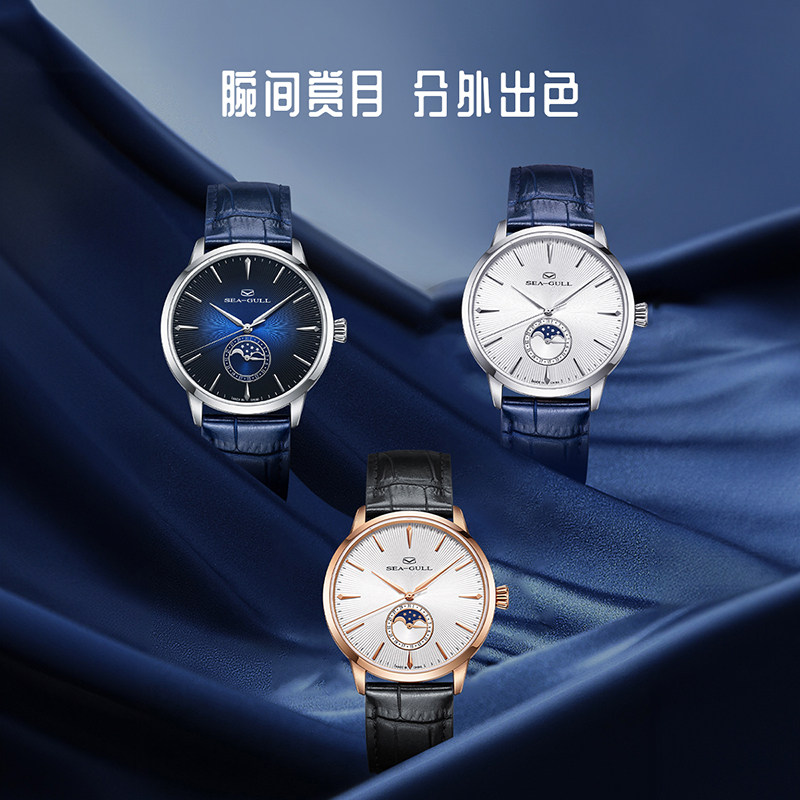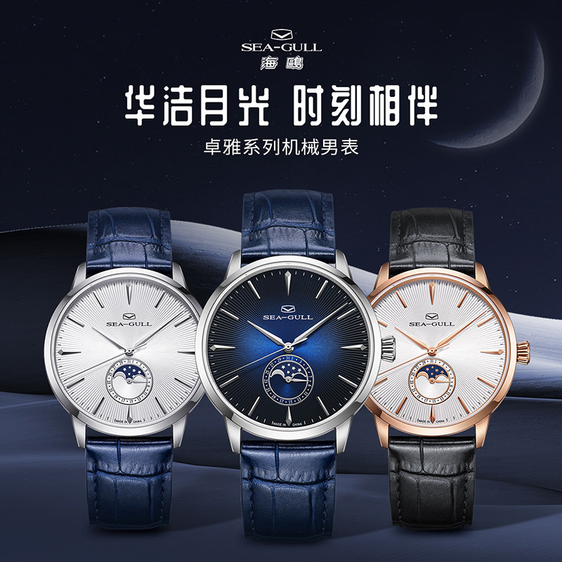 海鸥表手表男士ST18多功能月相机械表商务休闲腕表1135