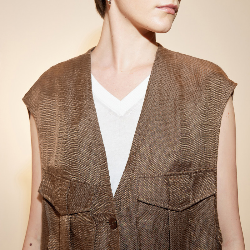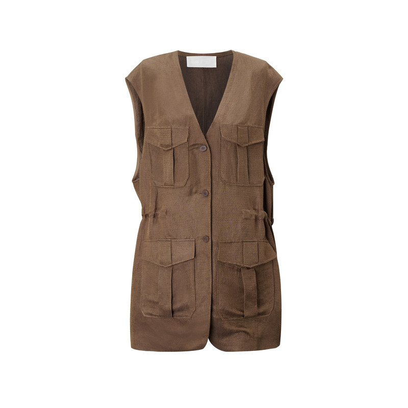 【LESSxSamuel】知识分子风亚麻马甲背心长款宽松外套女2N7513780