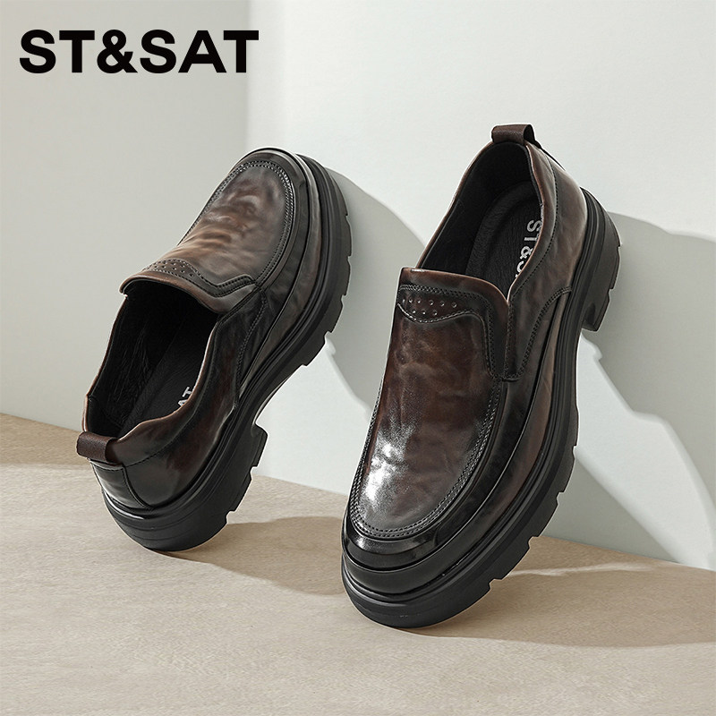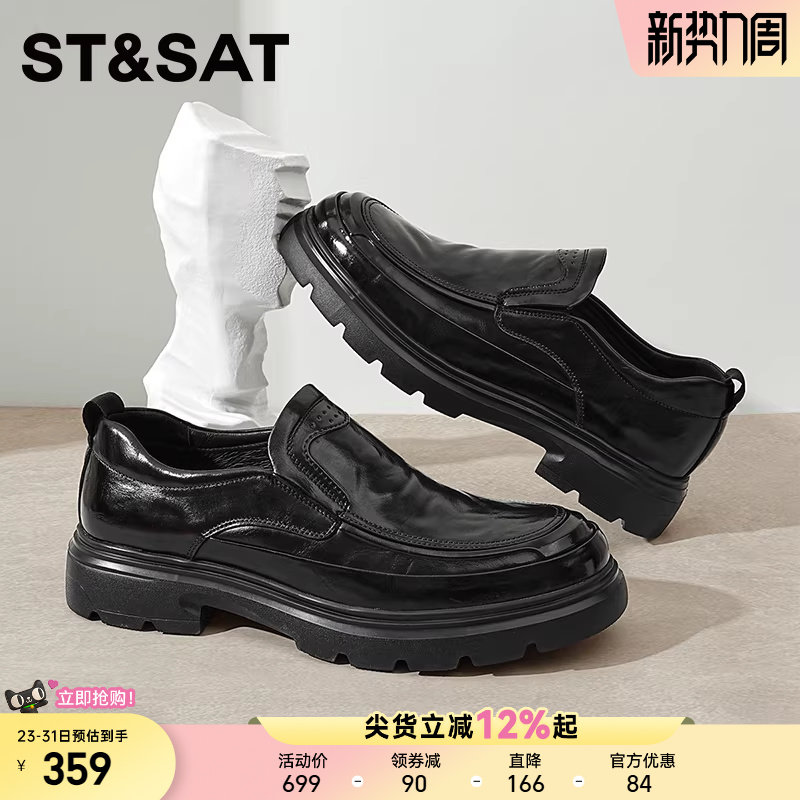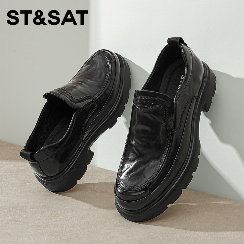 星期六男鞋新款春季商务正装休闲皮鞋男士一脚蹬厚底增高鞋子