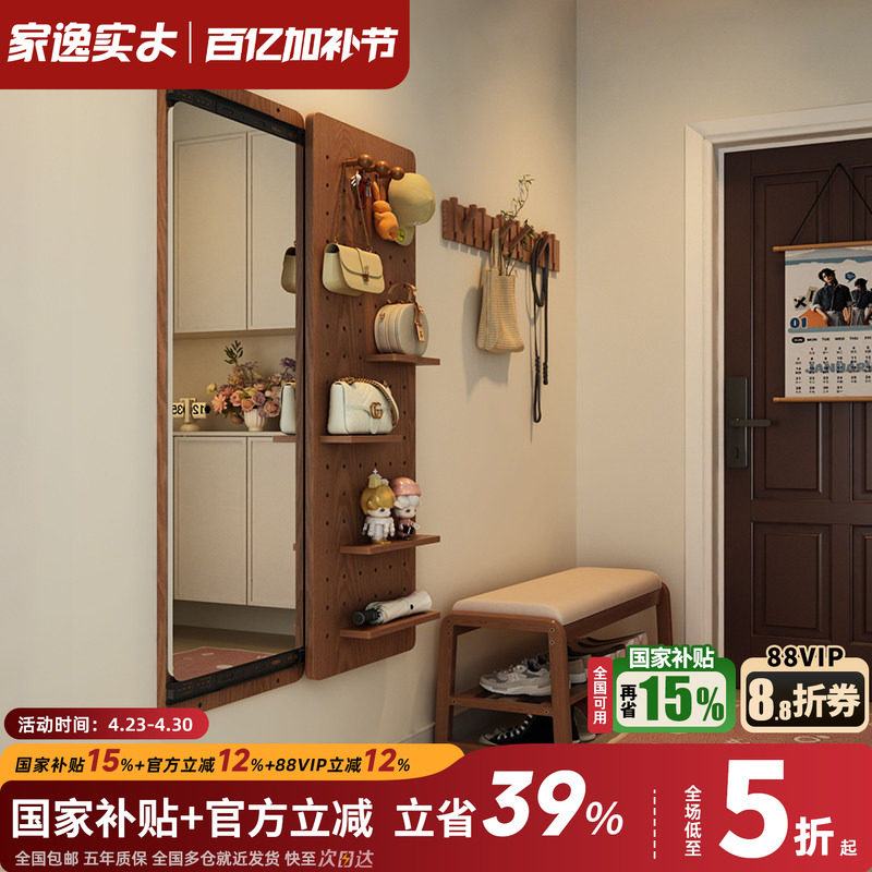 洞洞板穿衣镜一体隐形玄关镜子实木全身镜家用隐藏挂墙推拉试衣镜