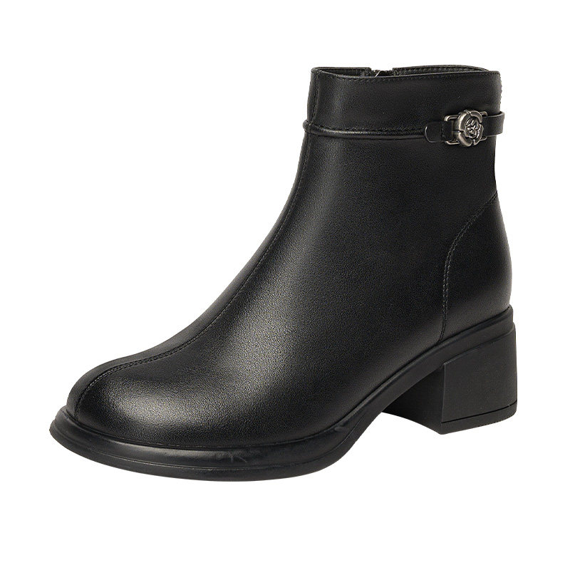 天美意厚底英伦奶皮靴加绒切尔西短靴女鞋子时装靴皮靴2025冬新款