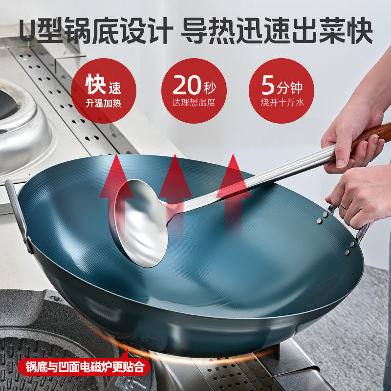 章丘炒菜锅传统铁锅官方旗舰老式炒锅家用不粘锅无涂层燃气灶适用