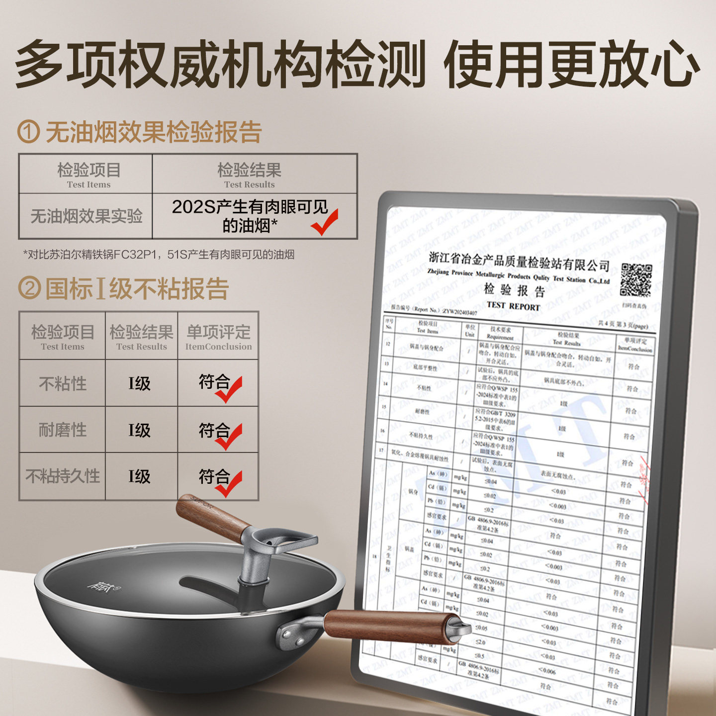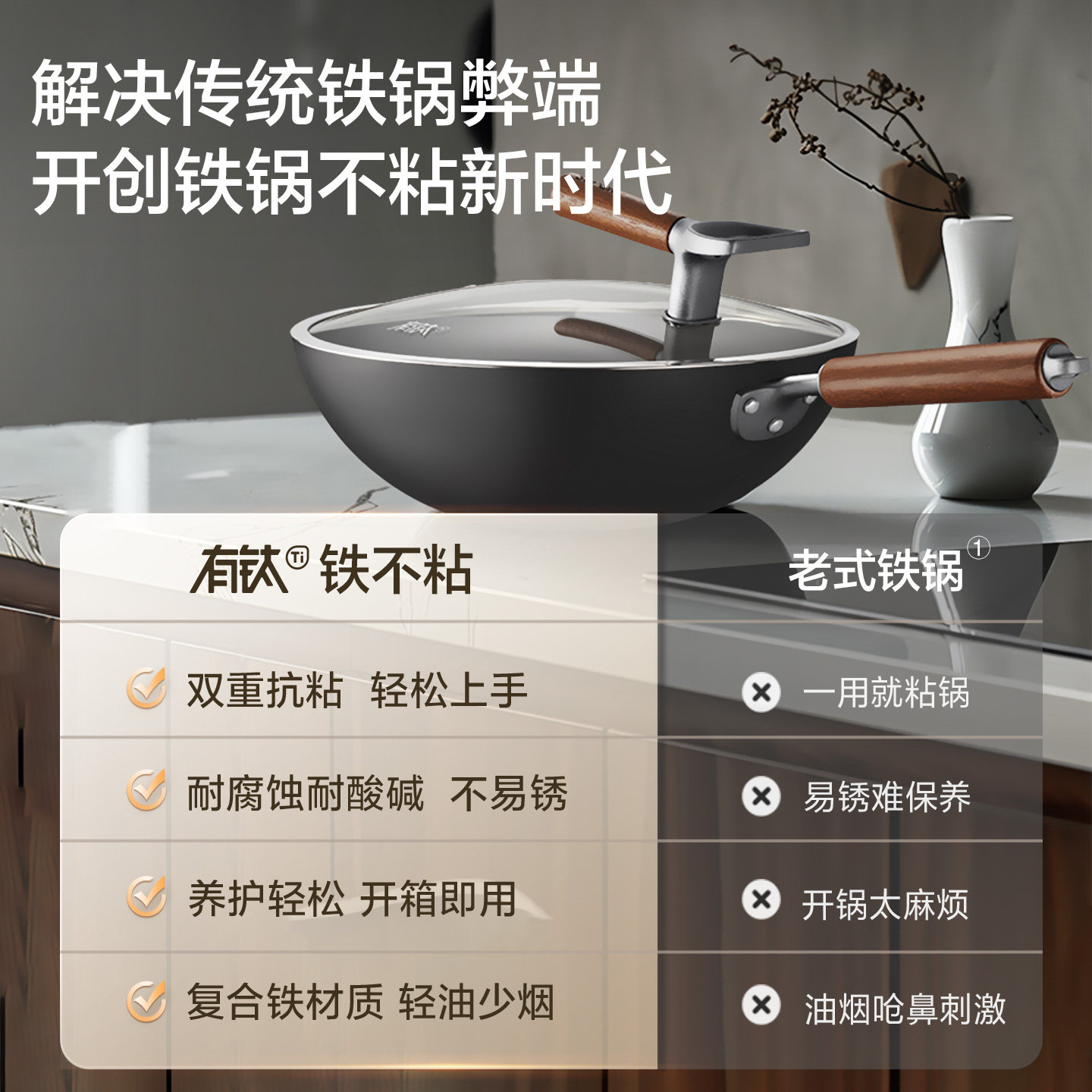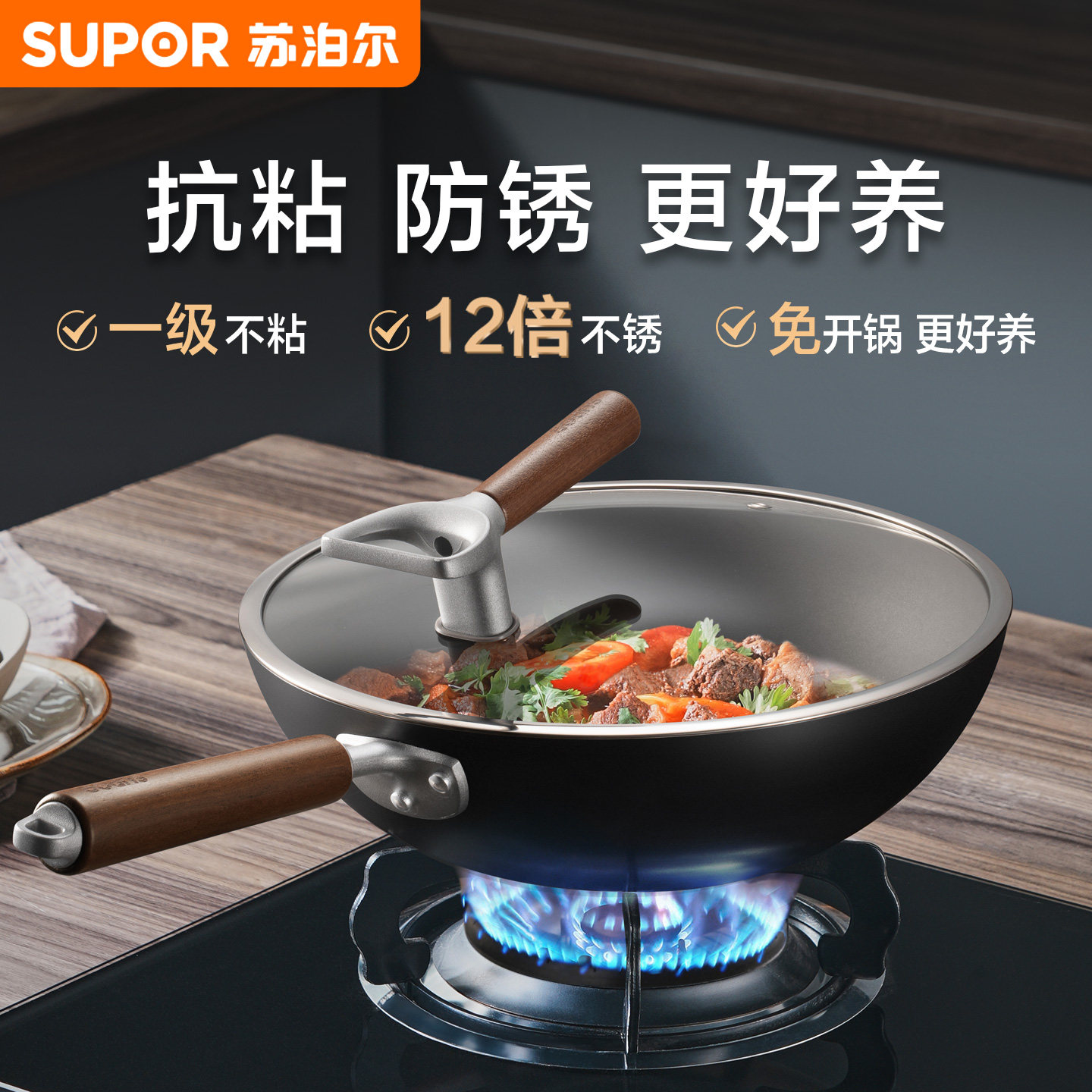 苏泊尔有钛无涂层铁锅家用炒锅炒菜锅不粘锅复合铁炒菜炒锅免开锅