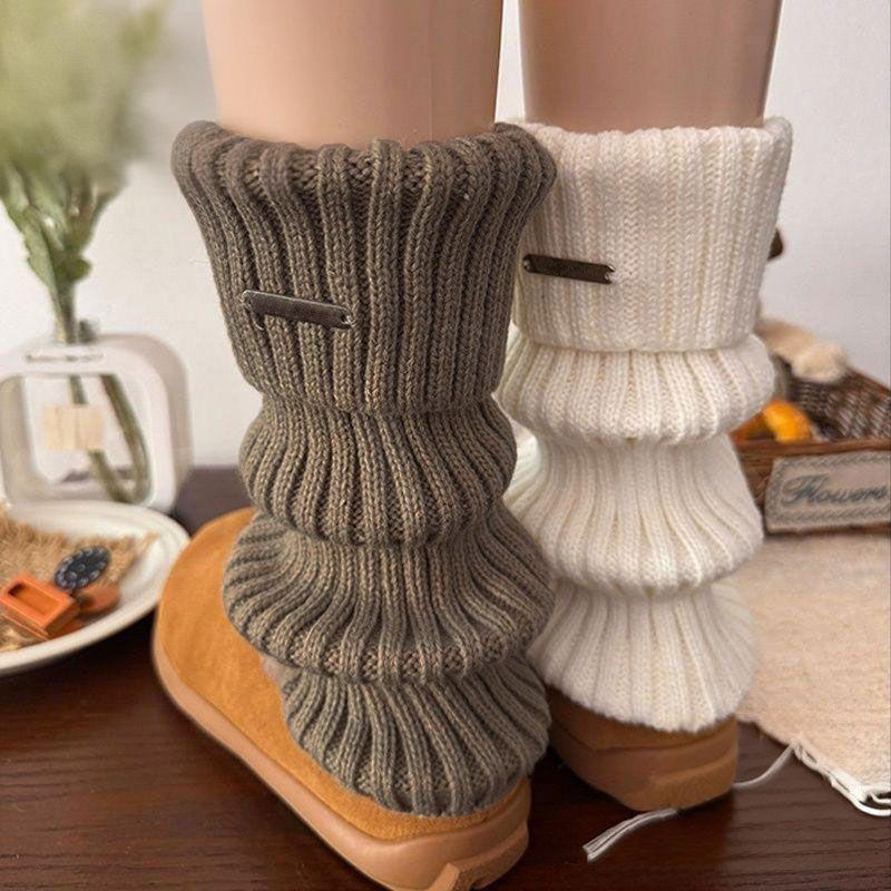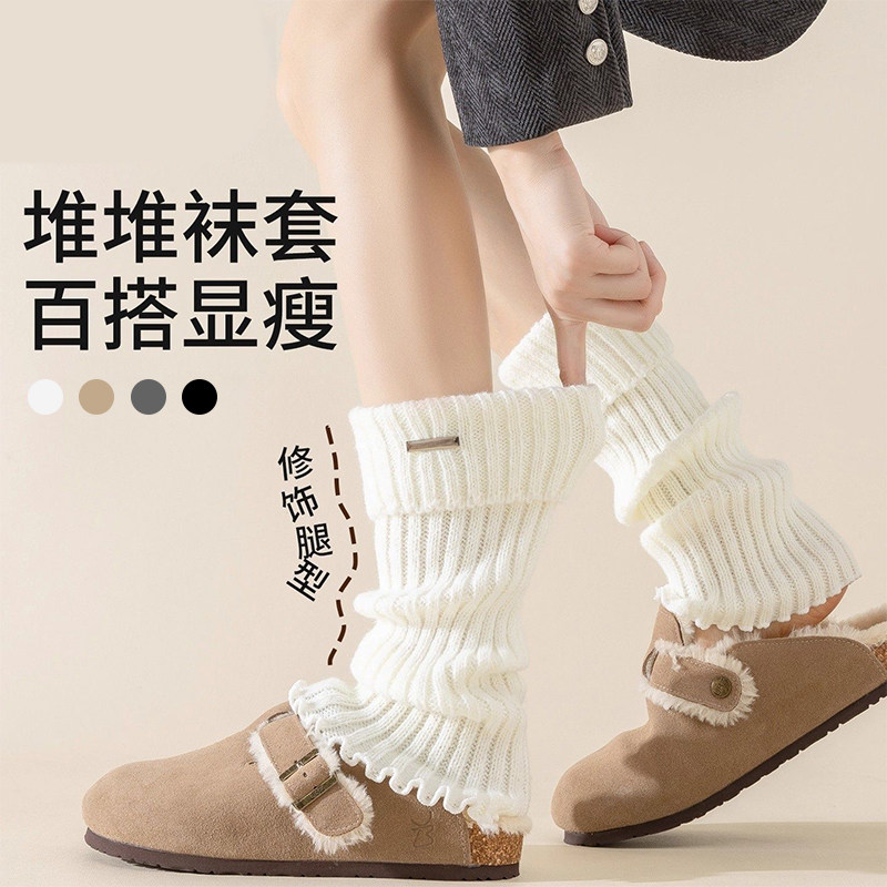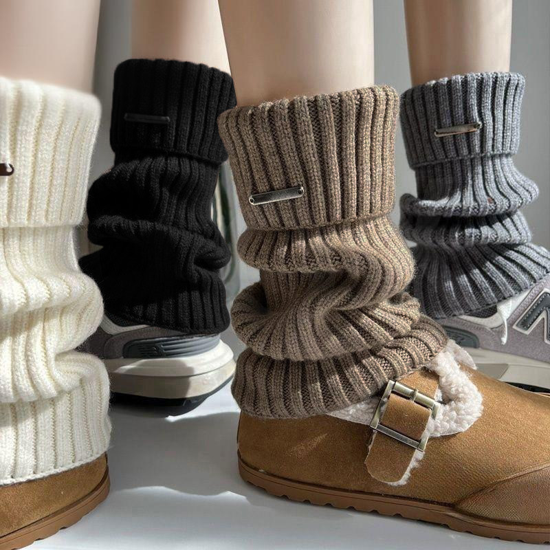 金属标日系奶白色羊绒袜套女秋冬季美式复古咖啡棕色翻口堆堆袜套
