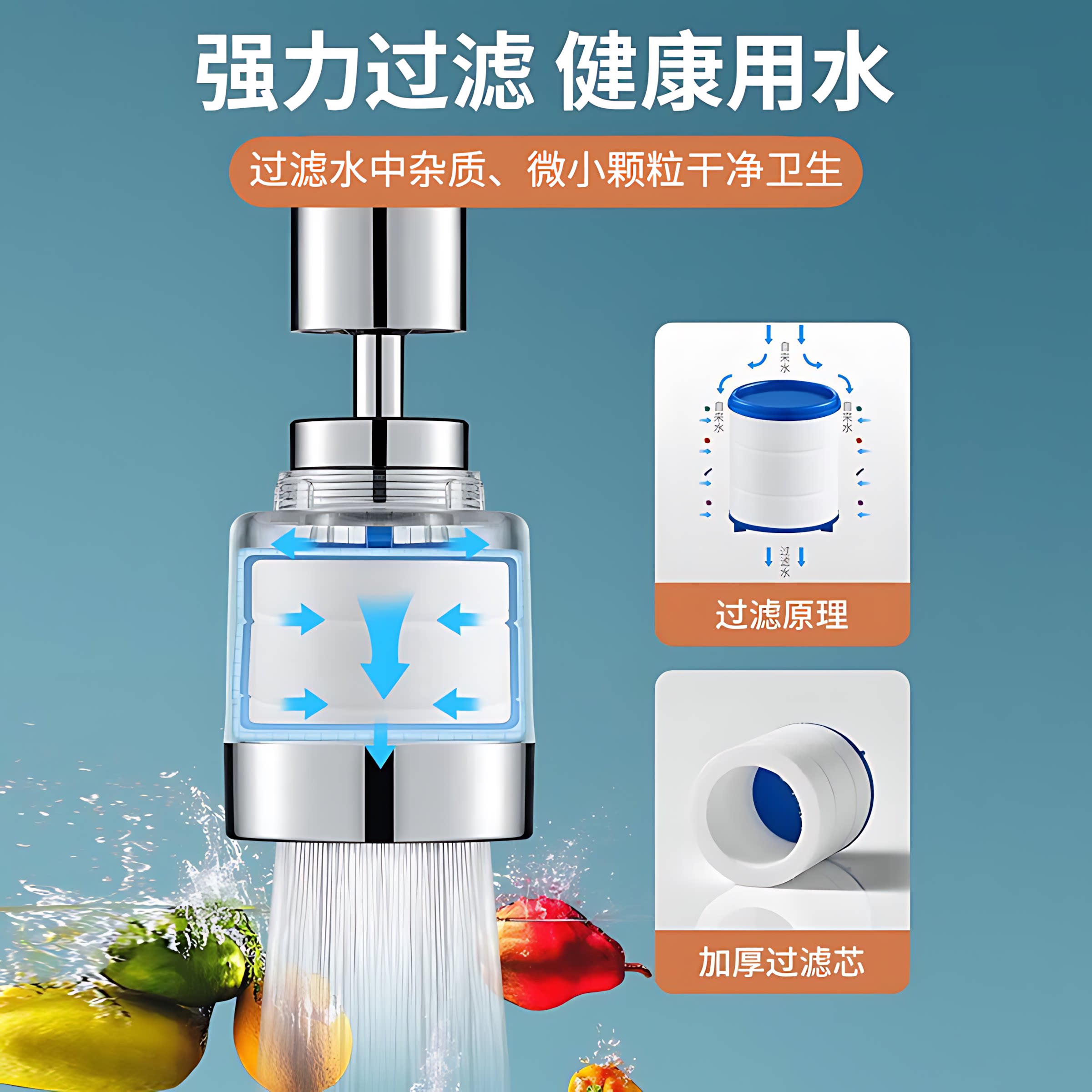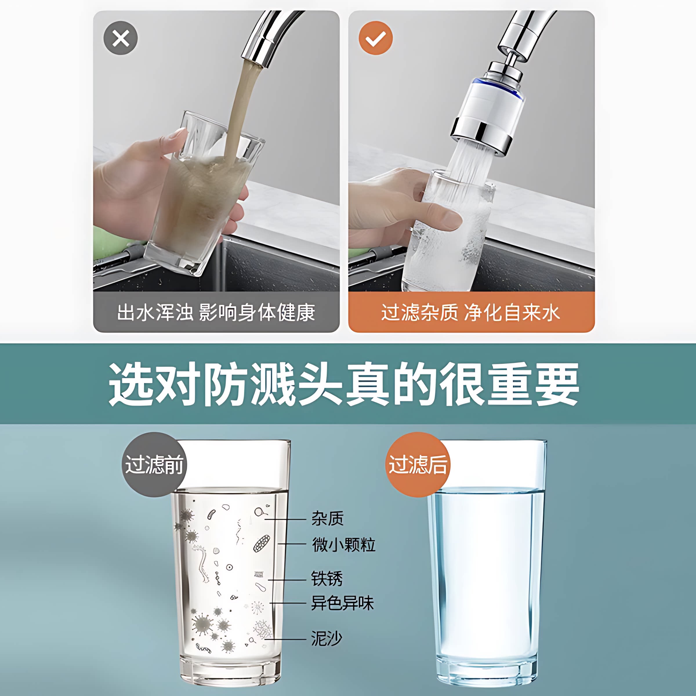 厨房水龙头过滤器防溅自来水嘴净化宿舍通用延伸净水器家用过滤芯