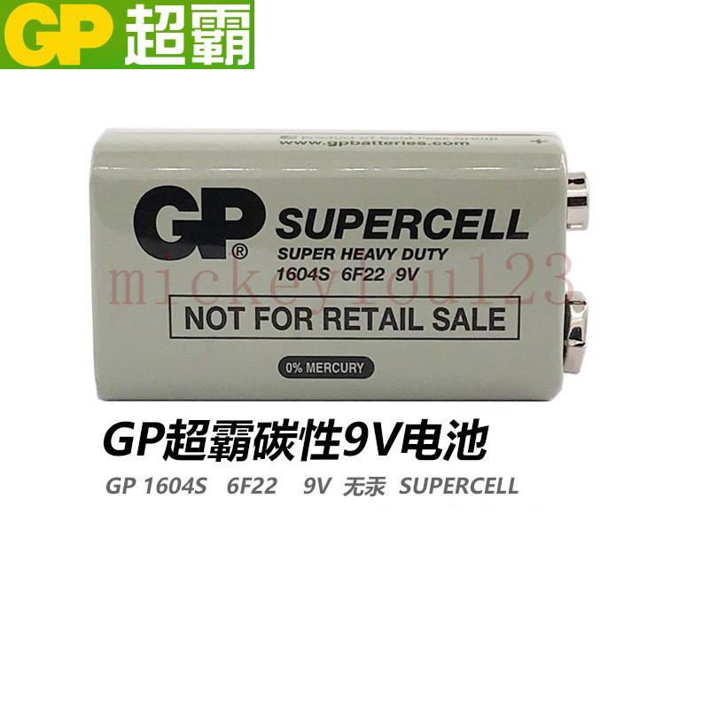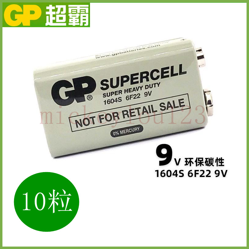 GP超霸9V方块电池9伏6F22烟雾报警器万用表话筒麦克风玩具1604S