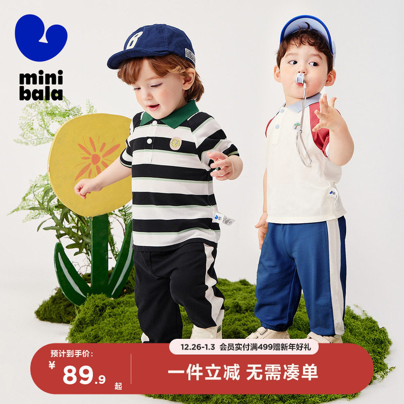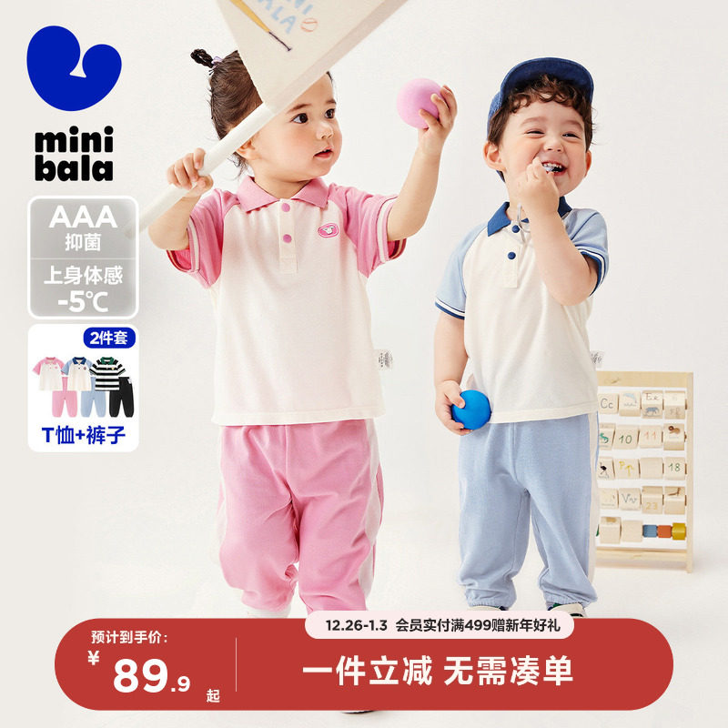[凉感抑菌]迷你巴拉巴拉短袖套装男女童POLO长裤T恤婴儿衣服新款