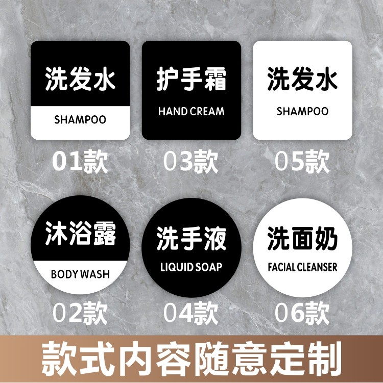 洗面奶护手霜沐浴露洗发水亚克力酒店浴室洗手液标识牌防水墙贴牌