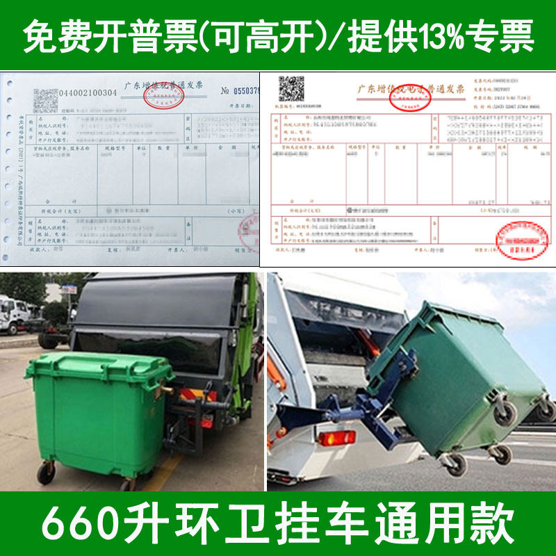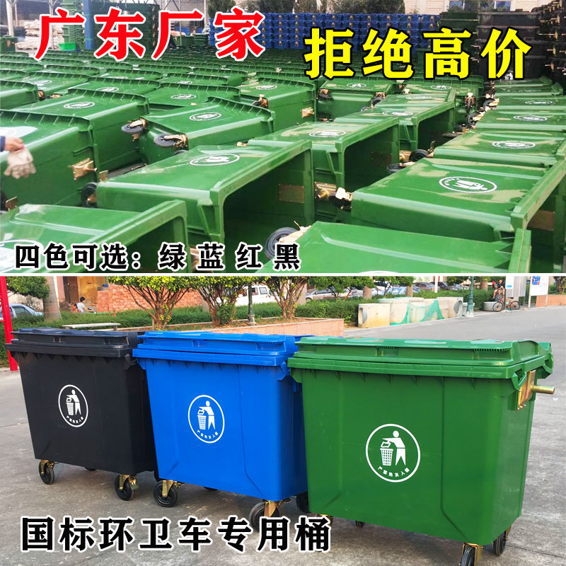660升L环卫挂车垃圾桶带轮盖超大型号容量市政商用加厚户外塑料桶