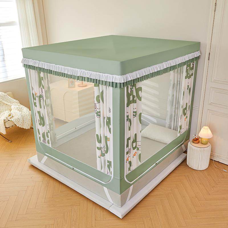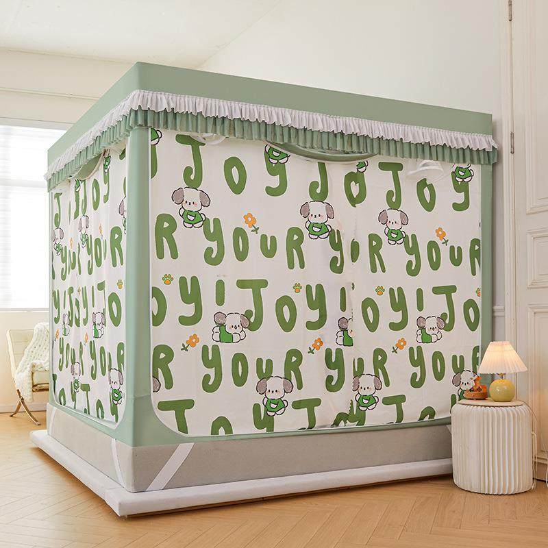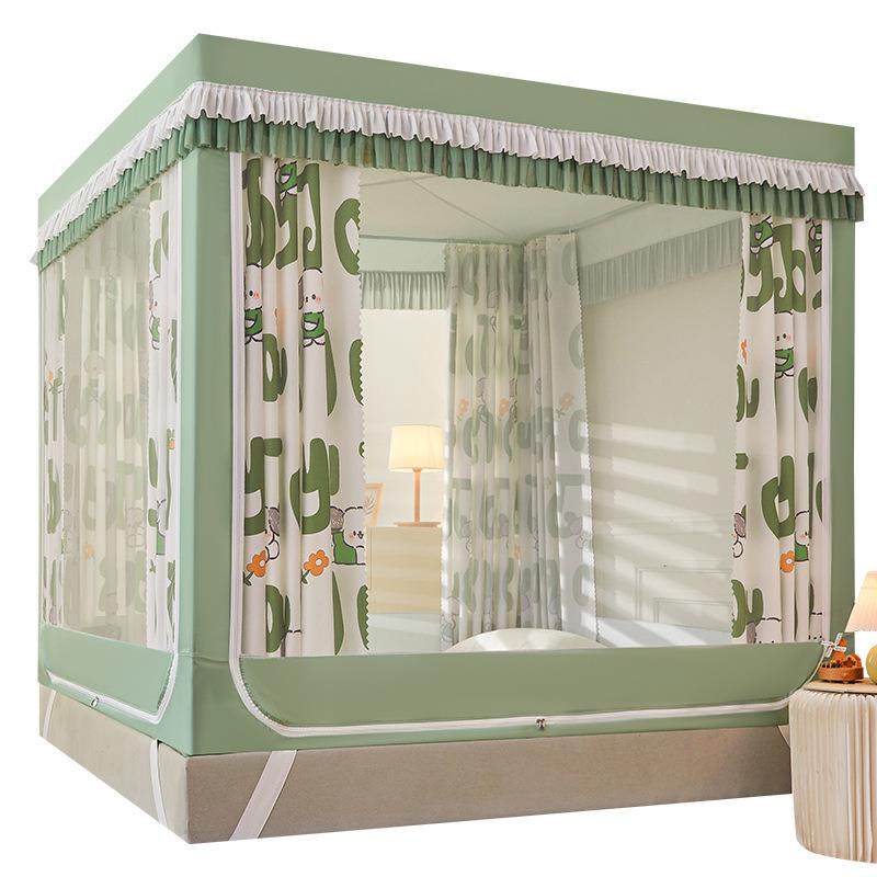 A类加密T+U型全底坐床遮光帘蚊帐卧室防摔三开门回底拉链防尘床幔