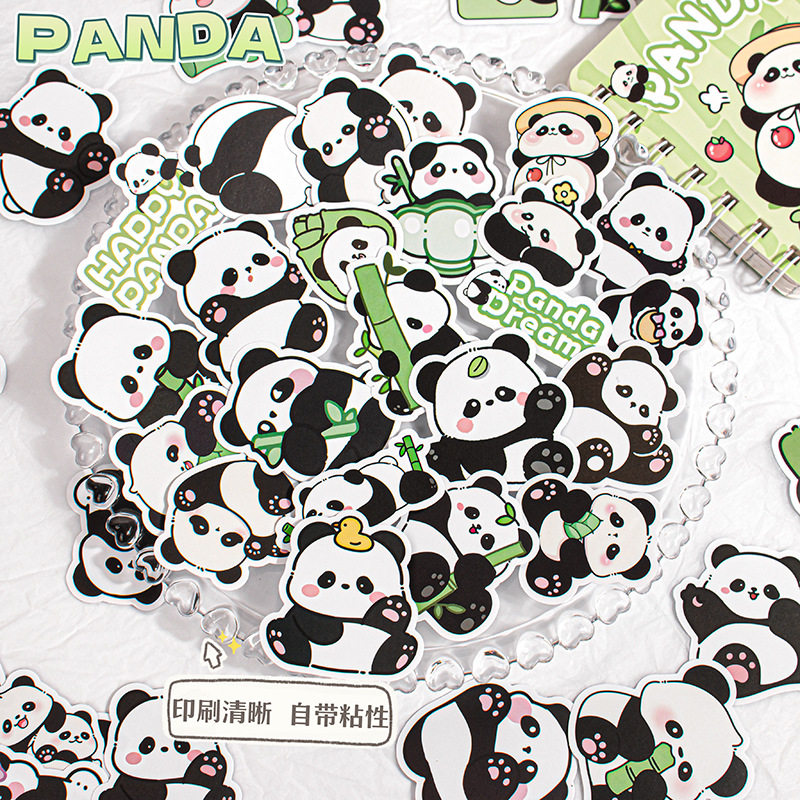 可爱熊猫贴纸表情包卡通不干胶手机水杯儿童女孩装饰小图案高颜值ins风自粘贴画行李箱手帐账素材封口拍立得
