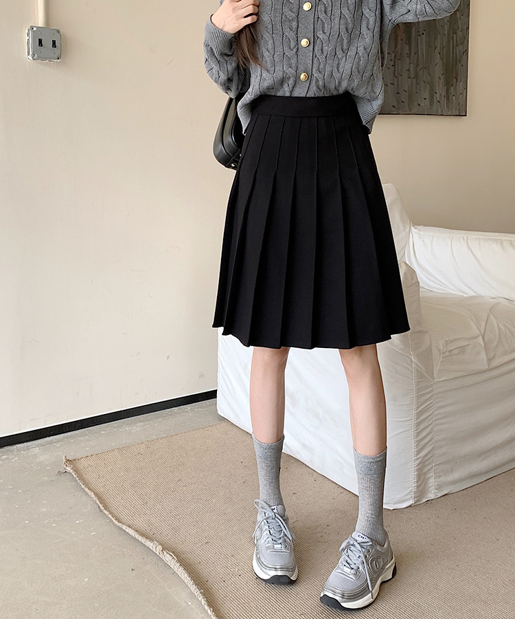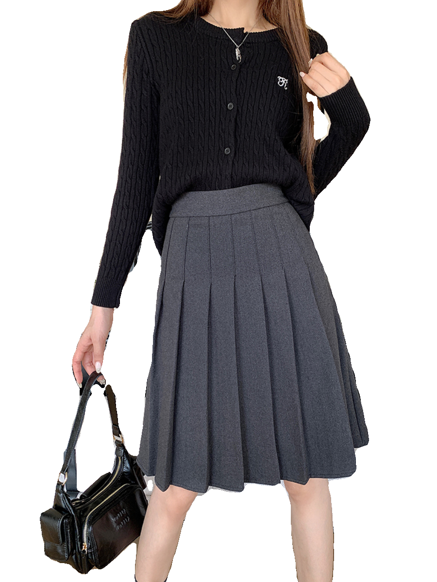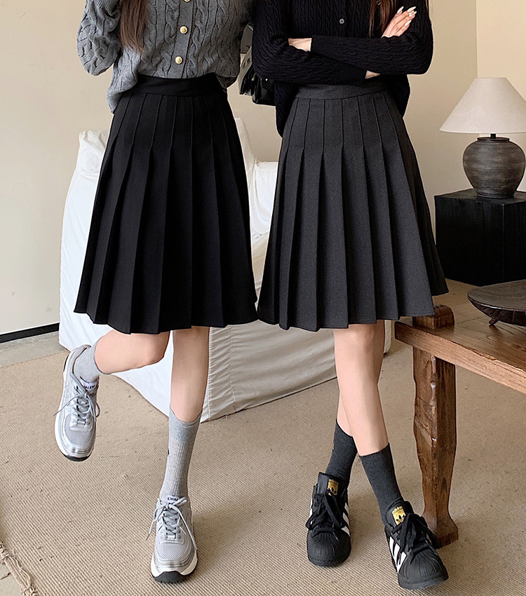 MJ STYLE灰色百褶西装裙女秋冬半身裙高腰休闲大摆a字过膝中长裙