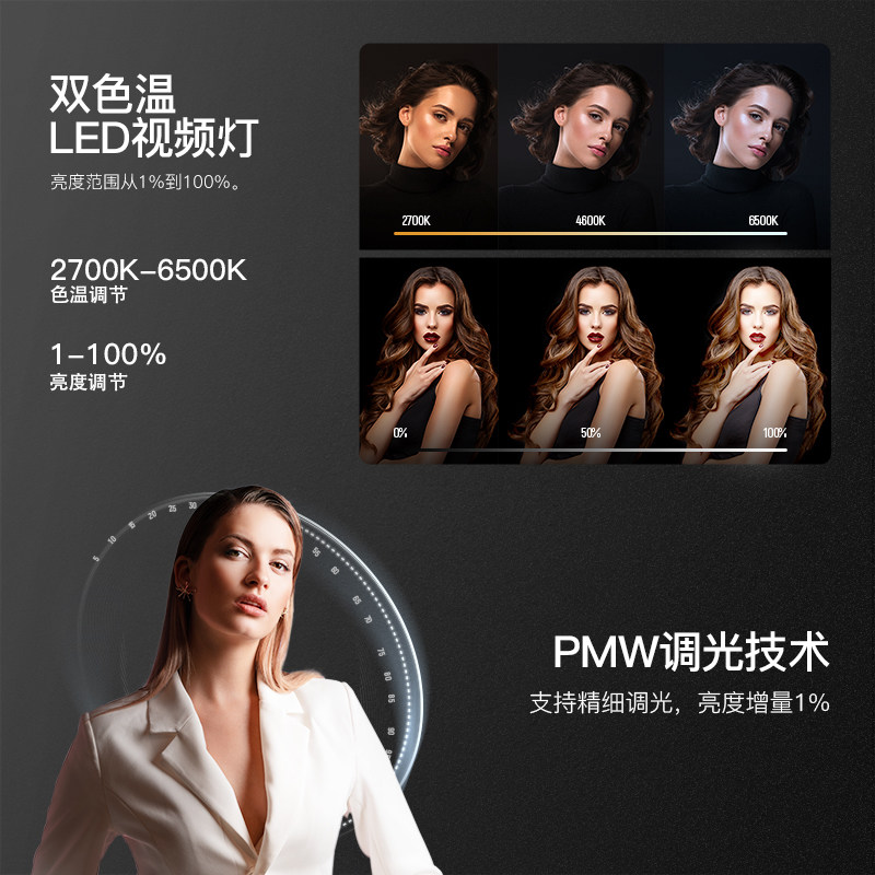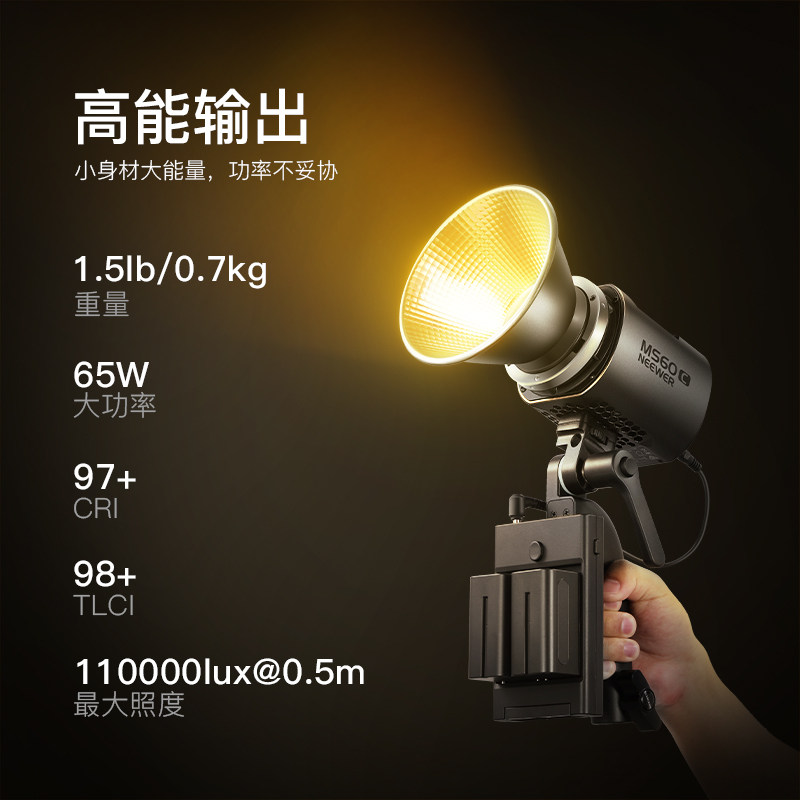 NEEWER/纽尔 MS60B小型外拍聚光灯LED摄影补光灯65W影楼灯太阳灯人像写真婚纱拍照直播视频常亮打光灯户外