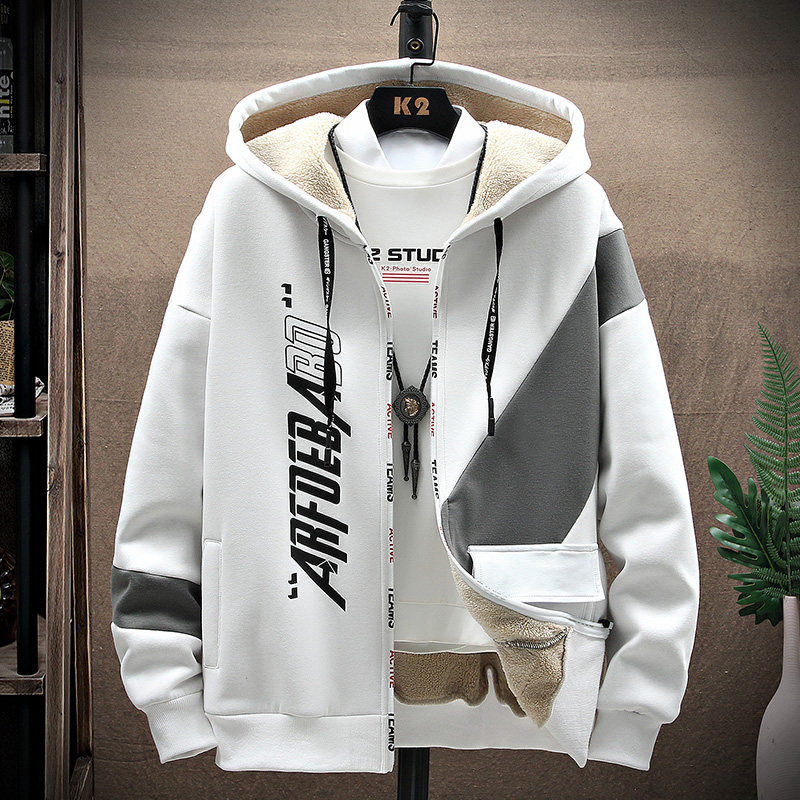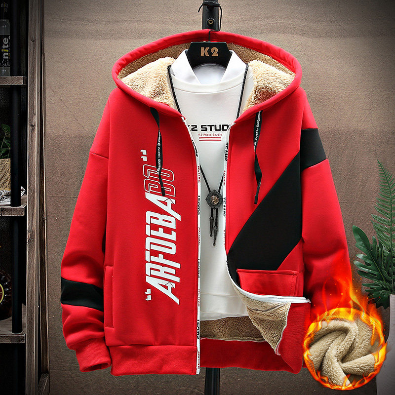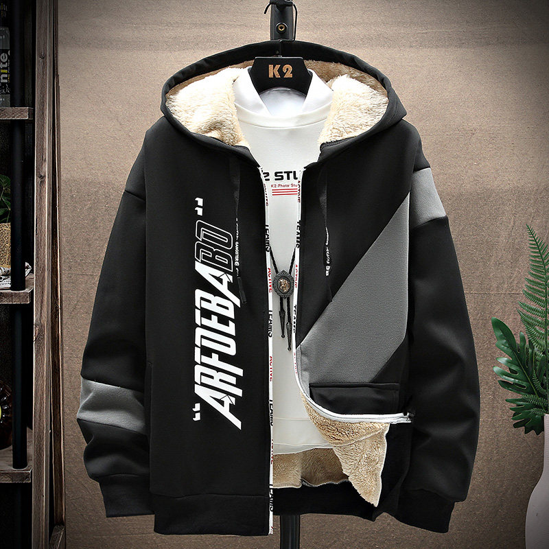 秋冬棉毛绒加厚保暖外套男孩运动休闲套装青少年学生潮流韩版卫衣