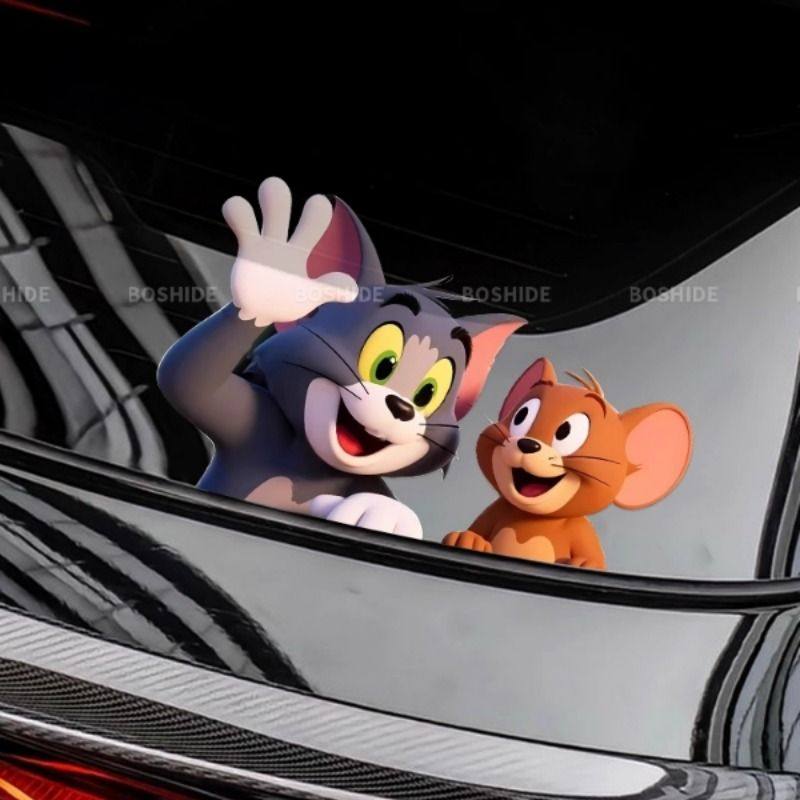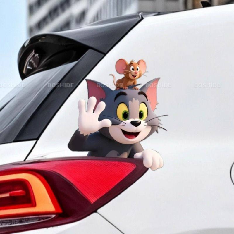3D立体猫和老鼠卡通可爱贴纸电动摩托汽车侧后窗划痕遮挡装饰车贴